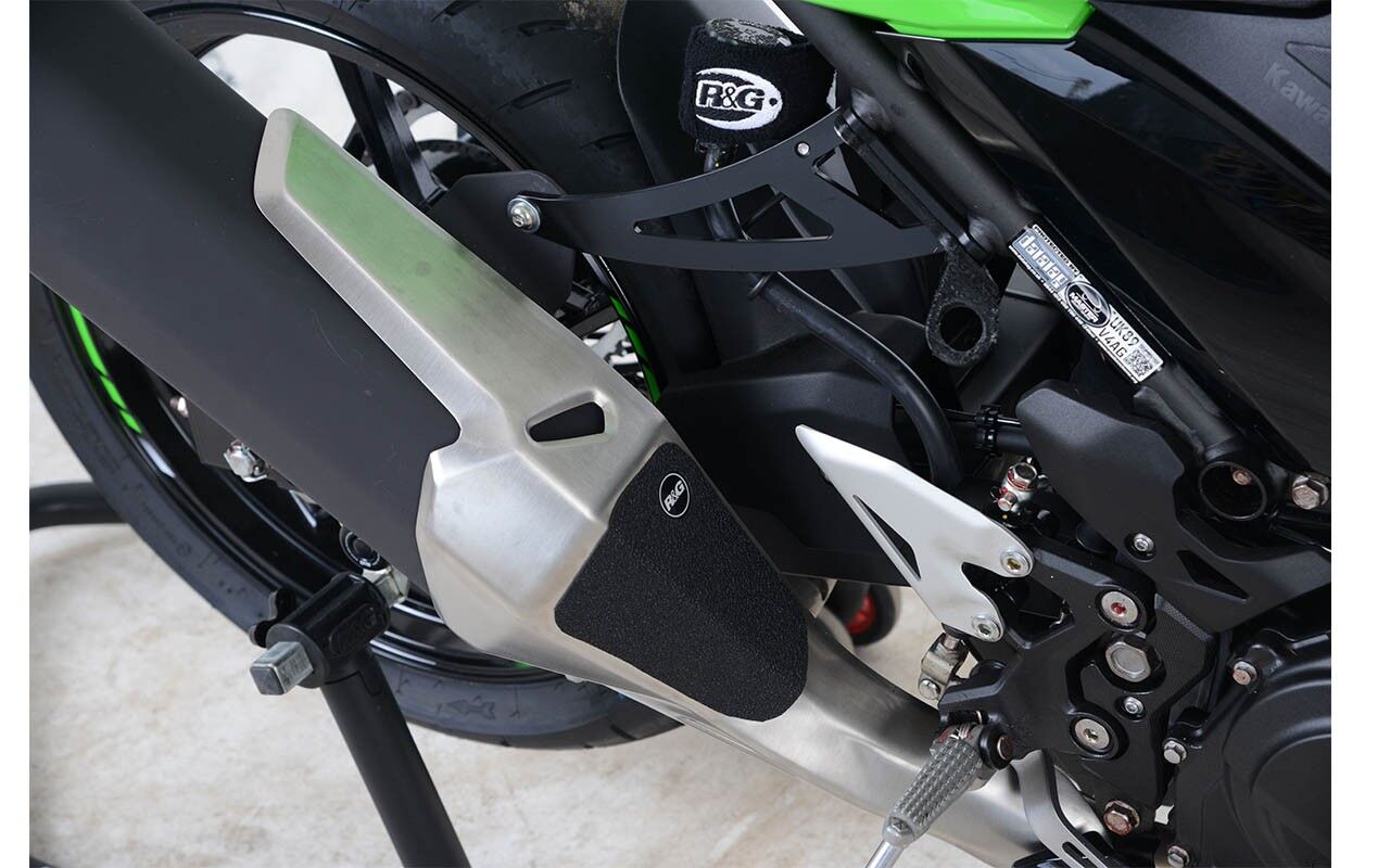 R&G Boot Guard kits are available for a large range of bike styles and brands, with new applications released regularly. The unique R&G texture was specifically designed to be durable, providing the rider with a buffer between their boot and the exposed areas of the swingarm which can (on occasion) come into contact with each other during cornering causing wear and unwanted damage to the swingarm or boots (both expensive to fix!). Each Boot Guard kit is supplied with precision pre-cut adhesive pieces, designed to fit the intended bike, typically in either 2 or 4 pieces depending on the shape of the swingarm. The high-strength adhesive backing ensures a highly durable product that will stay exactly where you put it, as well as not affecting or damaging paintwork. This 2pcs Boot Guard kit has been specially designed for the Kawasaki Ninja 7 Hybrid HEV / Z 7 Hybrid HEV '24-, Ninja 250/400 '18- & Z400/ Z250 '19- , Z500 (Ninja) '24- model. Made in the UK.