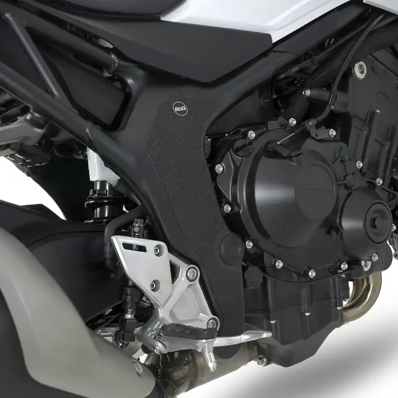 R&G Boot Guard kits are available for a large range of bike styles and brands, with new applications released regularly. The unique R&G texture was specifically designed to be durable, providing the rider with a buffer between his boot on the exposed areas of the swingarm which can (on occasion) come into contact with each other during cornering causing wear and unwanted damage to the swingarm or boots (both expensive to fix!). Each Boot Guard kit is supplied with precision pre-cut adhesive pieces, designed to fit the intended bike, typically in either 2 or 4 pieces depending on the shape of the swingarm. The high-strength adhesive backing ensures a highly durable product that will stay exactly where you put it, as well as not affecting or damaging paintwork. This 2pcs Boot Guard kit has been specially designed for the Honda CB1000 Hornet '25- models, protecting the swingarm from unwanted scuffs and marks. Please note: R&G Boot Guards now come with a 25mm diameter stick-on emblem. Made in the UK.