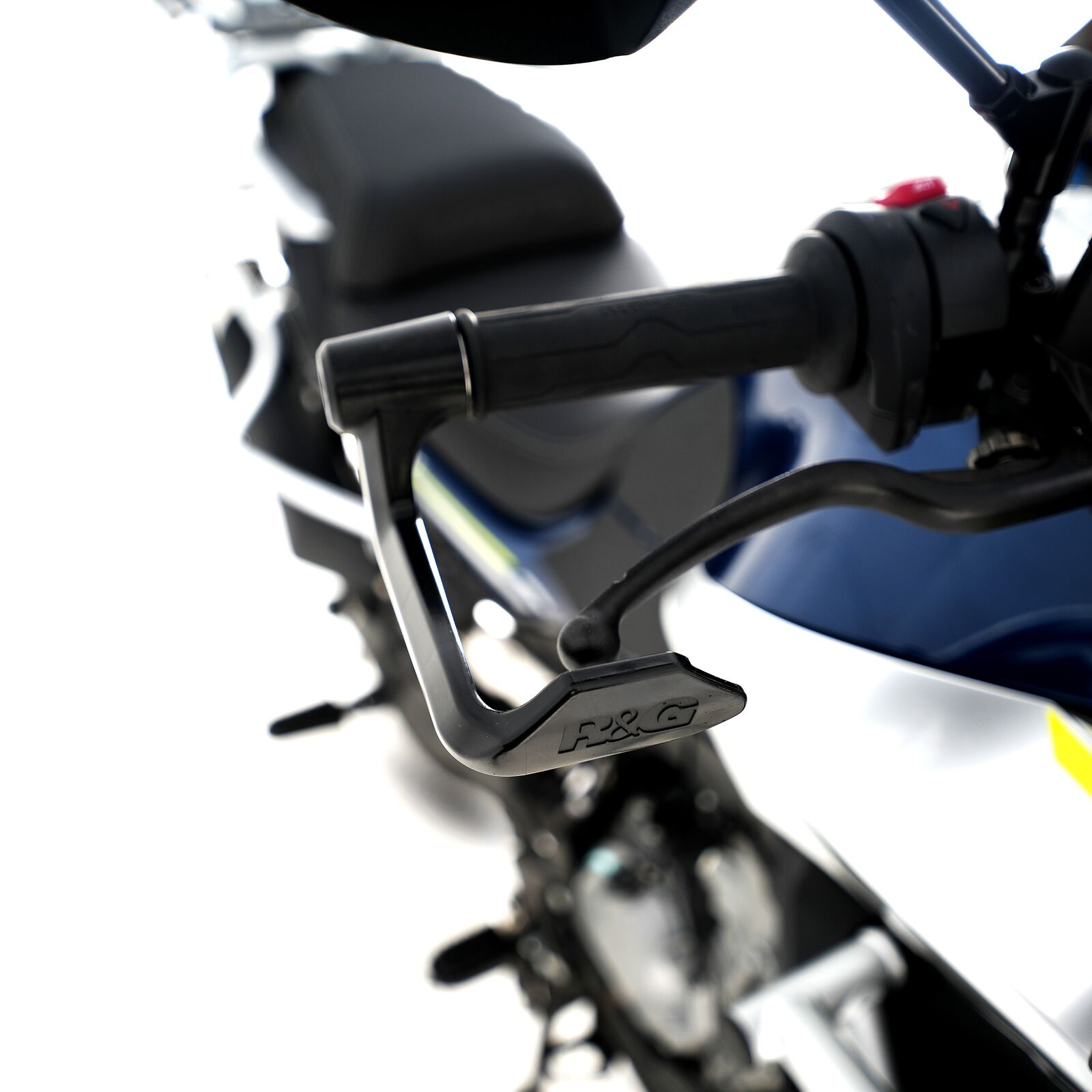 This R&G Brake Lever Guard kit can be fitted to the brake side and comes with our universal fitting kit, its expanding design clamps to the inside of the clip-on/handlebar (13-21mm diameter). Additionally, this kit is compatible with these models: Mosts Honda models, Most Yamaha models, (Please note that for the R25/R3 you will need to remove the OEM bar end internals) Ducati 848, 1098, 1198, PANIGALE, Panigale V4S '18- Monster 1200/S, Multistrada 1200 (up to 2014), Monster Ducati Monster 1100 , Monster 796 & Streetfighter 848/1098 EBR 1190SX 2014- Husqvarna NUDA 900R KTM 690SM, 950 SuperMoto, 990 & 990R Super Duke, 990 SMR/SMT, KTM RC125/200 KTM RC8 '08-, KTM 690 Duke'12-, 990 SMR'08-'12, 690 Duke R'13- and 1290 SuperDuke R MV AGUSTA F3 675 '12-/800 '13- and MV Agusta F4 '04- Triumph Speed Triple '97-