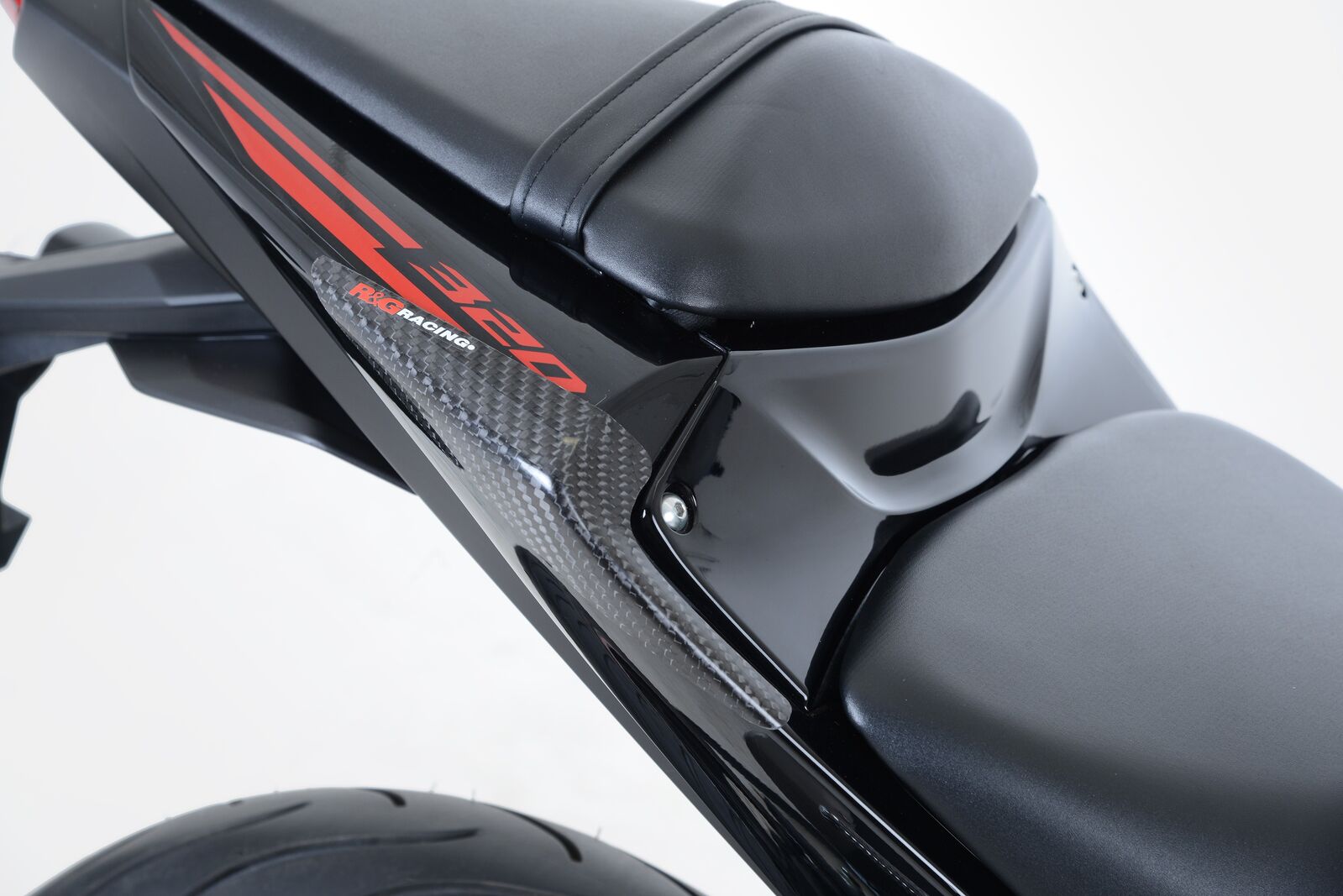 Our Tail Sliders are made from Carbon fibre reinforced with DuPont™ Kevlar®, offering excellent crash protection and wear resistance. Specially moulded to fit perfectly onto the tail, they are designed to fit onto the most pronounced corners and likely areas to get hit in the event of a crash or drop. Made in the U.K Application takes only minutes and they could save you having to replace your tank which can get dented or scratched in the event of a crash. As used by the California Superbike School. (http://www.superbikeschool.com/) This Tail Slider kit is compatible with Yamaha YZF-R25 '14- and YZF-R3 '15- '24 models.