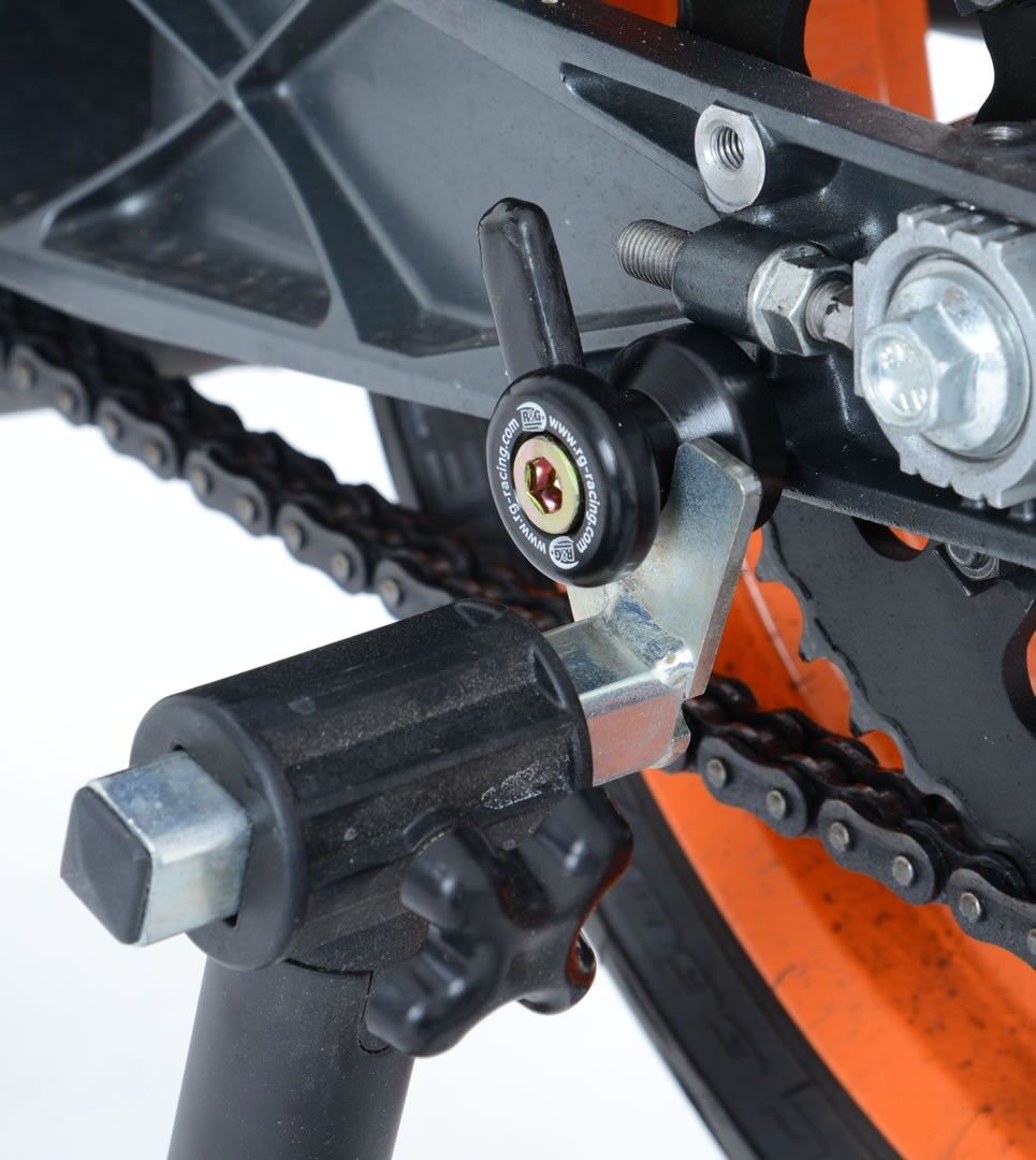 The Cotton Reel protects the swingarm and swingarm core components in the event of a crash or drop, but also double up as paddock stand bobbins. Allowing the motorcycles rear wheel to be lifted into the air via a paddock stand to perform chain adjustment, tyre changes and cleaning!