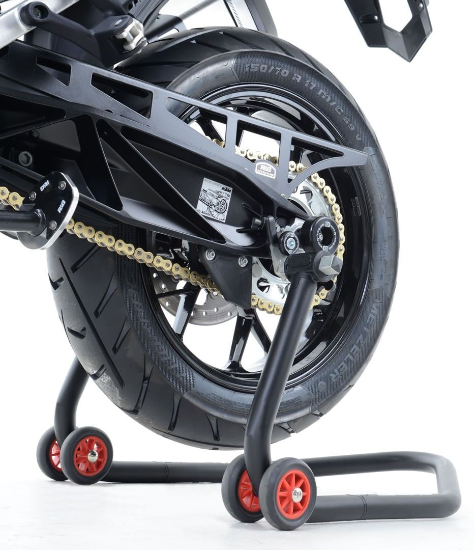 These cotton reels mount directly into the mounting points on the rear swingarm offering the best of both worlds in terms of crash protection and functionality with the ability to use R&G cotton reels, which offer excellent crash protection to those components located towards the rear as well as the ability to lift up the rear of the bike with a paddock stand for maintenance and tyre changes. Suitable for the KTM 1050 Adventure '15- and KTM 1290 Super Adventure '15-'20 models & KTM 890 SMT '23- '24. Available in Black, White or Orange Sold in Pairs.