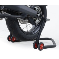 Suitable for the Honda CBR650F '14-, Honda CB650F '14-, Honda Africa Twin CRF1000L '16-, Africa Twin Adventure Sports '18-'19, CB650R '19- / CBR650R '19- / CB1000 Hornet & SP '25- models. These Cotton Reels mount into a specially designed block, replacing the original chain adjuster blocks. The product gives protection to the swingarm, rear disc and chain areas. Also the bike can be lifted on the Cotton Reels, using a paddock stand with hooks (suggest R&G code SH0001) to perform maintainence and cleaning. Come in pairs.