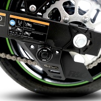 These cotton reels mount directly into the mounting points on the rear swingarm offering the best of both worlds in terms of crash protection and functionality with the ability to use R&G cotton reels, which offer excellent crash protection to those components located towards the rear as well as the ability to lift up the rear of the bike with a paddock stand for maintenance and tyre changes. Specially designed for the Kawasaki Ninja 250/400 '18- & Z400/Z250 '19-, Z500 (Ninja) '24-,  Ninja 7 Hybrid HEV / Z 7 Hybrid HEV '24-, they are designed to be slightly smaller than a standard "cotton reel" to enable them to pass the OE exhaust, which, under extreme riding condition, might impact with a standardly sized cotton reel.