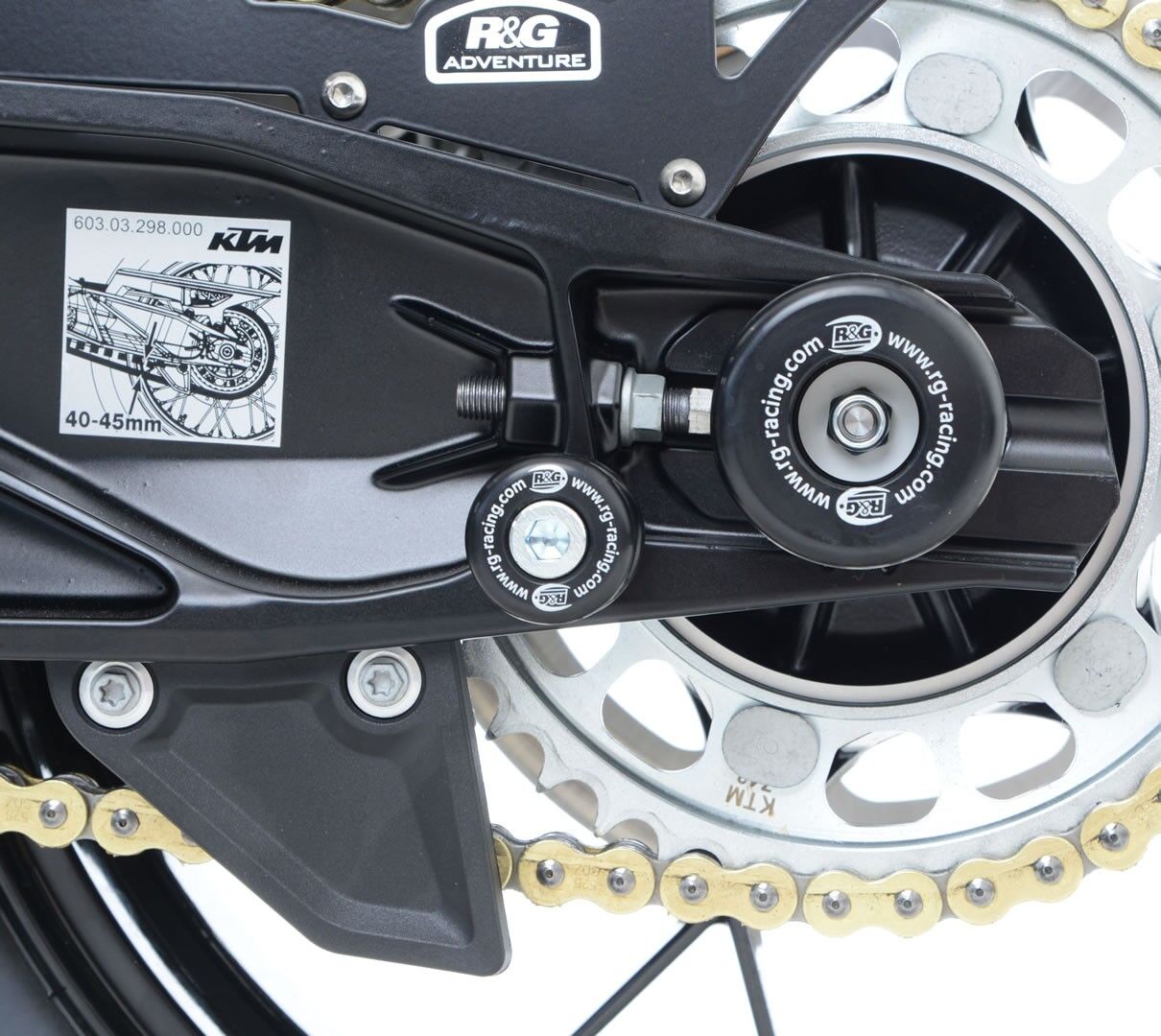 These cotton reels mount directly into the mounting points on the rear swingarm offering the best of both worlds in terms of crash protection and functionality with the ability to use R&G cotton reels, which offer excellent crash protection to those components located towards the rear as well as the ability to lift up the rear of the bike with a paddock stand for maintenance and tyre changes. Suitable for the KTM 1050 Adventure '15- and KTM 1290 Super Adventure '15-'20 models & KTM 890 SMT '23- '24. Available in Black, White or Orange Sold in Pairs.