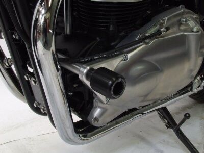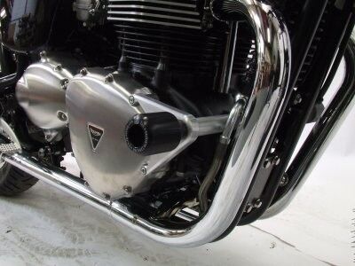 These crash protectors feature our stylish classic designed bobbins and are available in black. Suitable for the Triumph Thruxton '04 onwards, Bonneville all models '06 onwards and the Scrambler '06 onwards.