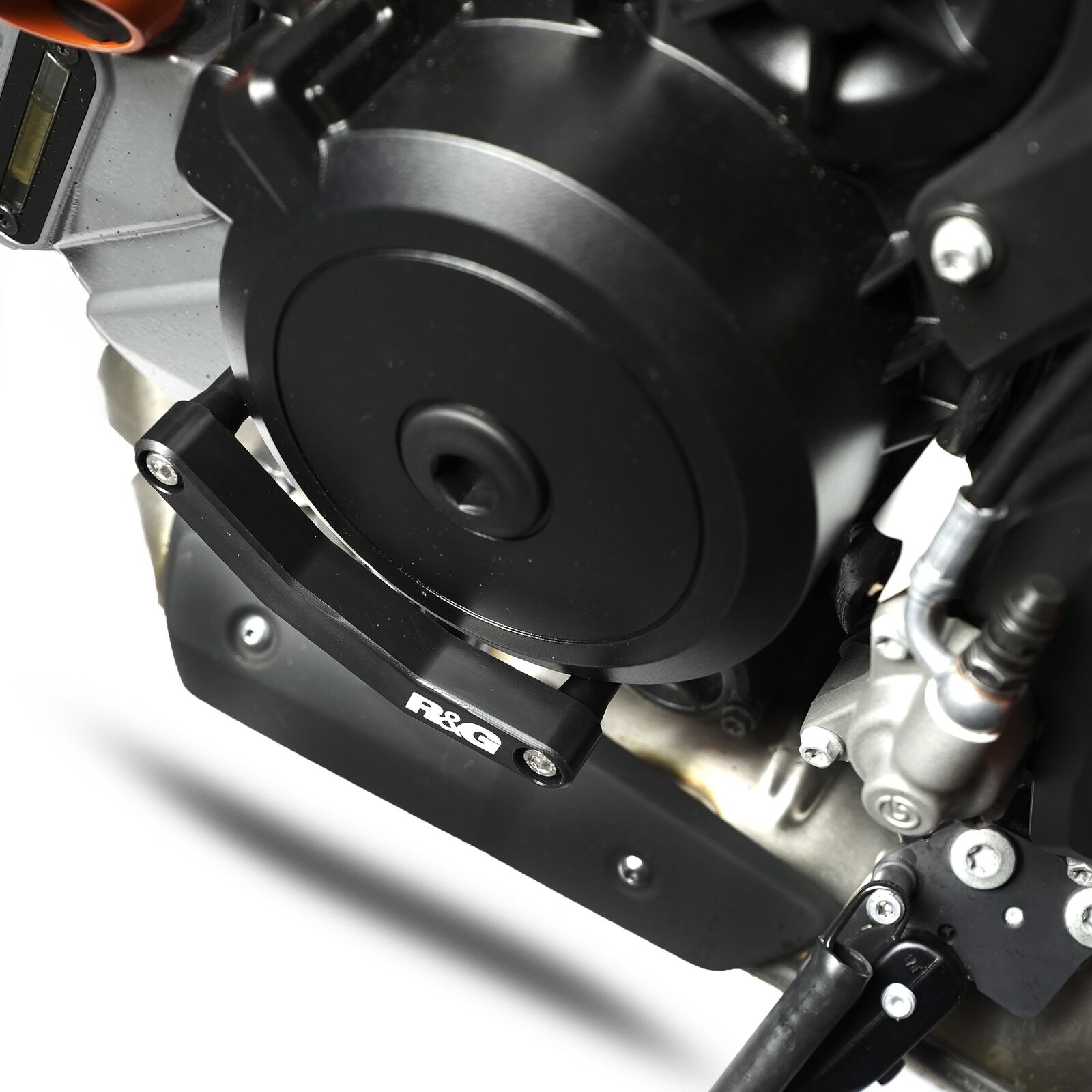 This Engine Case Slider for the KTM 1390 SUPERDUKE R/R EVO 2024. This product fits neatly and easily to the existing engine case and will provide additional protection in the event of a drop. R&G engine case sliders compliment the R&G crash protectors and the additional range of products that we offer for these bikes.
