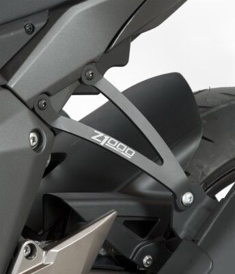 This stylish R&G Exhaust Hanger has been specifically designed for the Kawasaki Z1000 '10-, Z1000SX  model and not only reduces weight, but also gives the bike a sportier, sleeker look.  With a classy, black, powder coated finish and vivid Z1000 graphics, it is made from sturdy, aircraft-grade aluminium and will retain its good looks for many years.