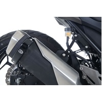 This stylish R&G Exhaust Hanger has been specifically designed for the Kawasaki Ninja 300 ('12-) Ninja 250 ('13- '17) & Z250 '13-'18 model and not only reduces weight, but also gives the bike a sportier, sleeker look.  With a classy, black, powder coated finish and vivid Ninja graphics, it is made from sturdy, aircraft-grade aluminium and will retain its good looks for many years.