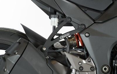 This stylish R&G Exhaust Hanger has been specifically designed for the Kawasaki Z1000 '10-, Z1000SX  model and not only reduces weight, but also gives the bike a sportier, sleeker look.  With a classy, black, powder coated finish and vivid Z1000 graphics, it is made from sturdy, aircraft-grade aluminium and will retain its good looks for many years.