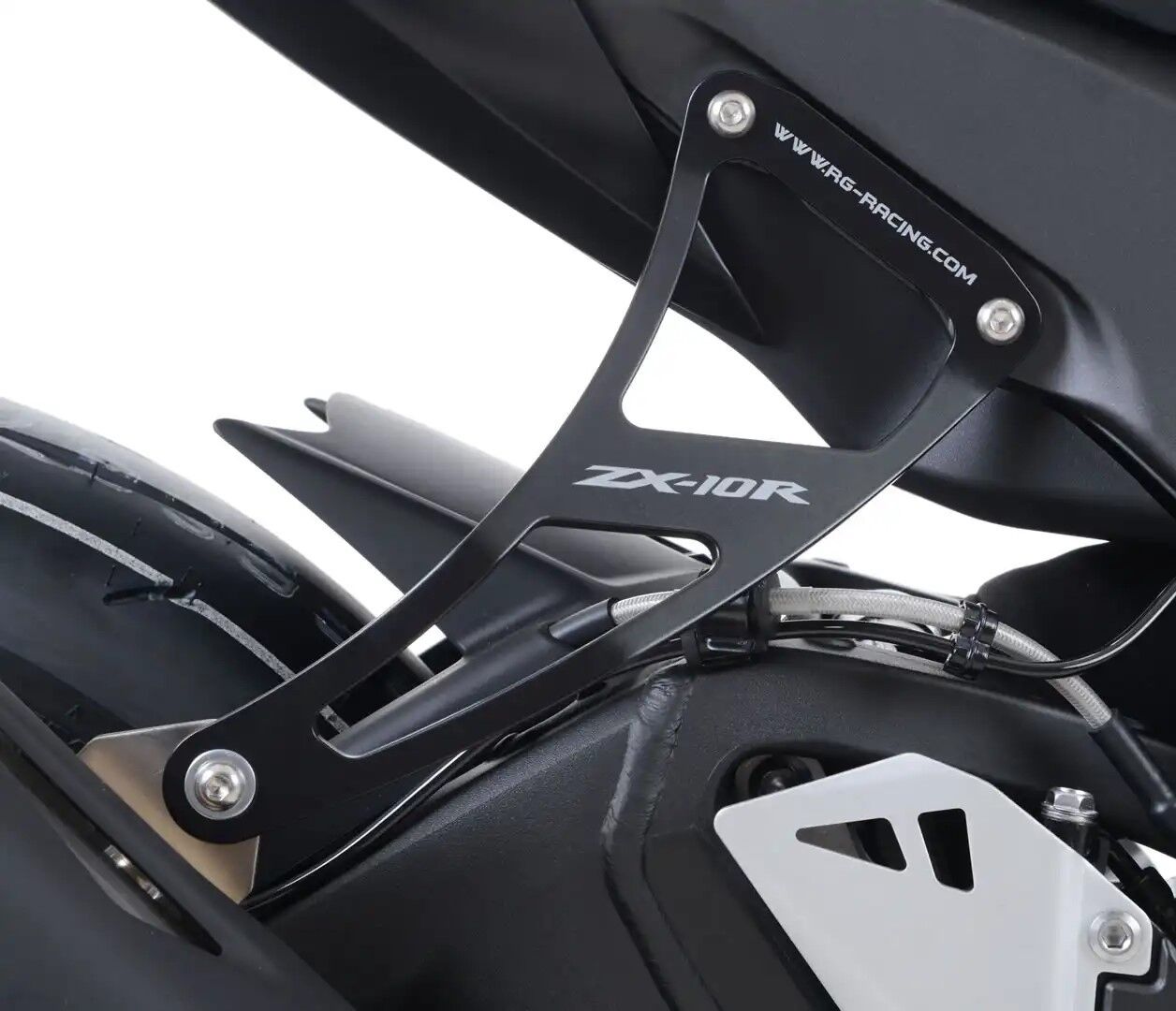 This R&G Exhaust Hanger is suitable for Kawasaki ZX10-R '11-24 & ZX-10RR '21-24. If you using a pillion seat cover, ditch those unsightly pillion pegs and exchange them for our stylish looking exhaust hanger with "ZX10R" logo. (Also available BLP0006 offside pillion peg cover - Available in a set EH0047BKA)