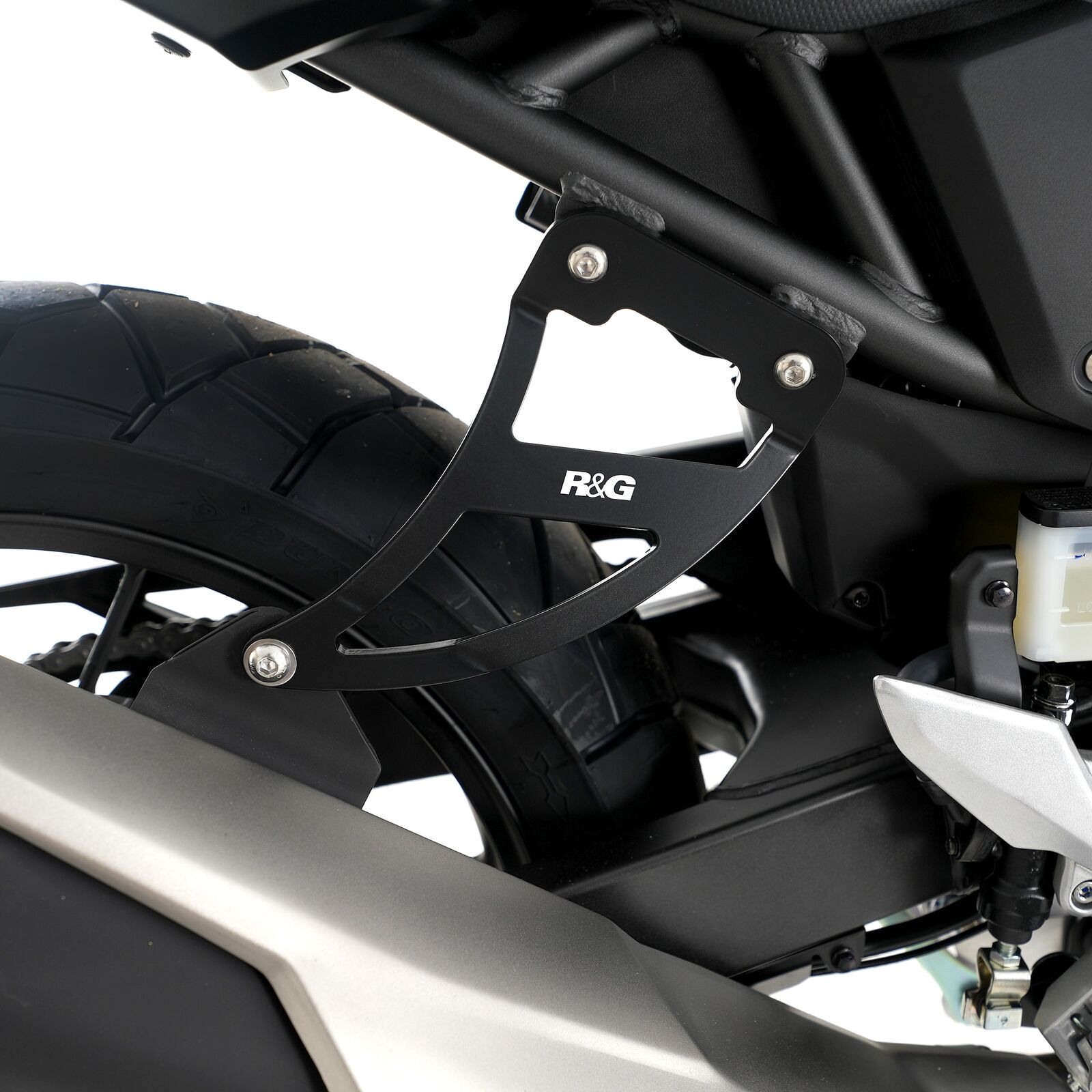 This stylish R&G Exhaust Hanger has been specifically designed for the Honda CB500X '19-23, CB400X '19- & NX500 '24- and not only reduces weight, but also gives the bike a sportier, sleeker look.  With a classy, black, powder coated finish and R&G graphic, it is made from sturdy, aircraft-grade aluminium and will retain its good looks for many years.