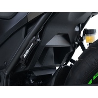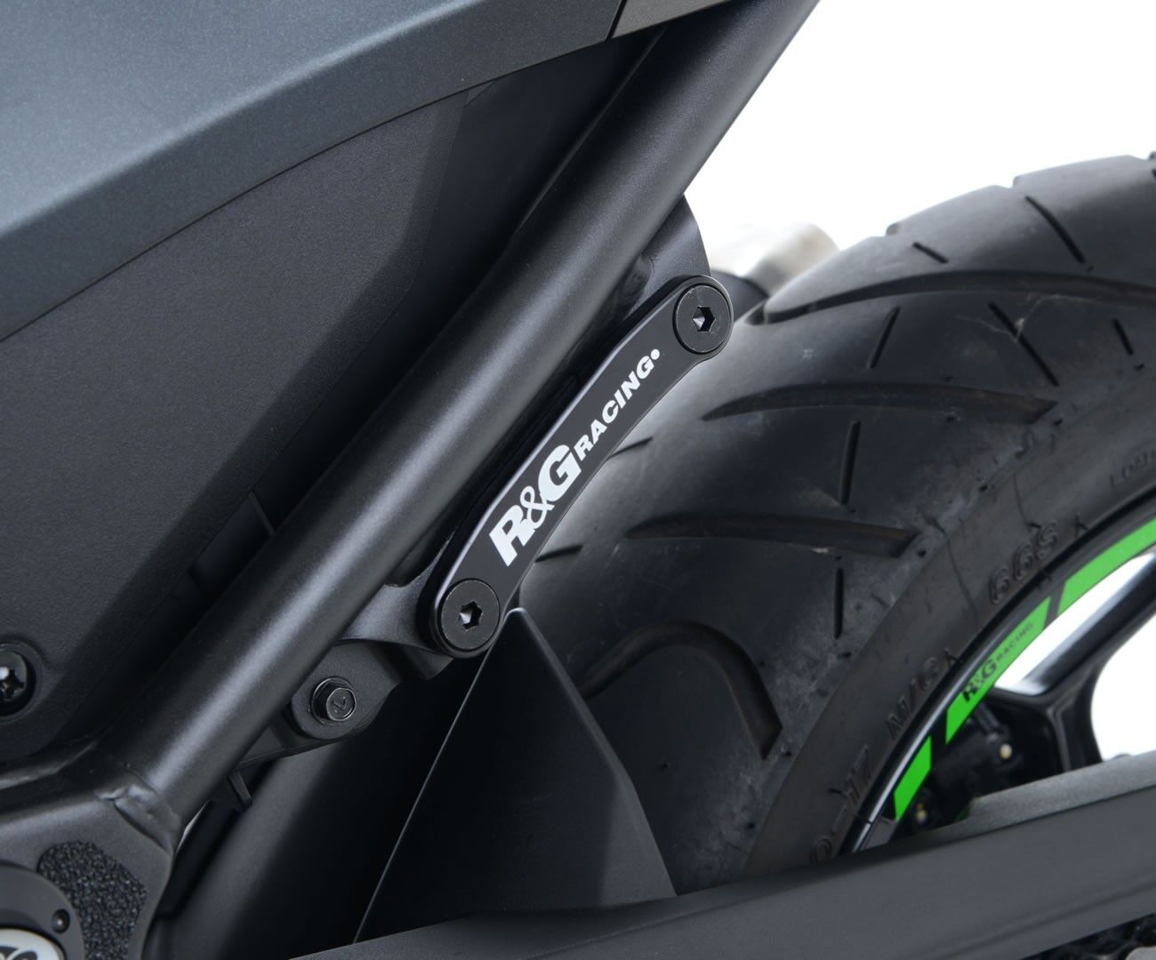 Finished in black this stylish Exhaust Hanger has been specially designed for the Kawasaki Ninja 300 ('12-) Ninja 250 ('13- '17) & Z250 '13-'18. Made from 6mm aluminium and featuring a modern design, this Exhaust Hanger really gives the bike a more aggressive racing look, ditching those unsightly pillion pegs (especially if they are never used!). Finshed in black powdercoat for a strong durable finish this exhaust hanger really looks the part finished with a "ninja" printed graphic in white. Compatible with the OEM exhausts aswell as aftermarket systems. Suitable for the left hand side of the Kawasaki Ninja 300 ('12-) and Kawasaki Ninja 250 ('13-). This blanking plate simply screws in, covering those otherwise exposed subframe holes keeping from clear of dirt buildup. Finished in Black with white R&G Racing logo. This kit comes with replacement bolts and full fitting instructions. Also available separately. - EH0055BK (Exhaust Hanger) and BLP0026BK (Rear Footrest Blanking Plate).