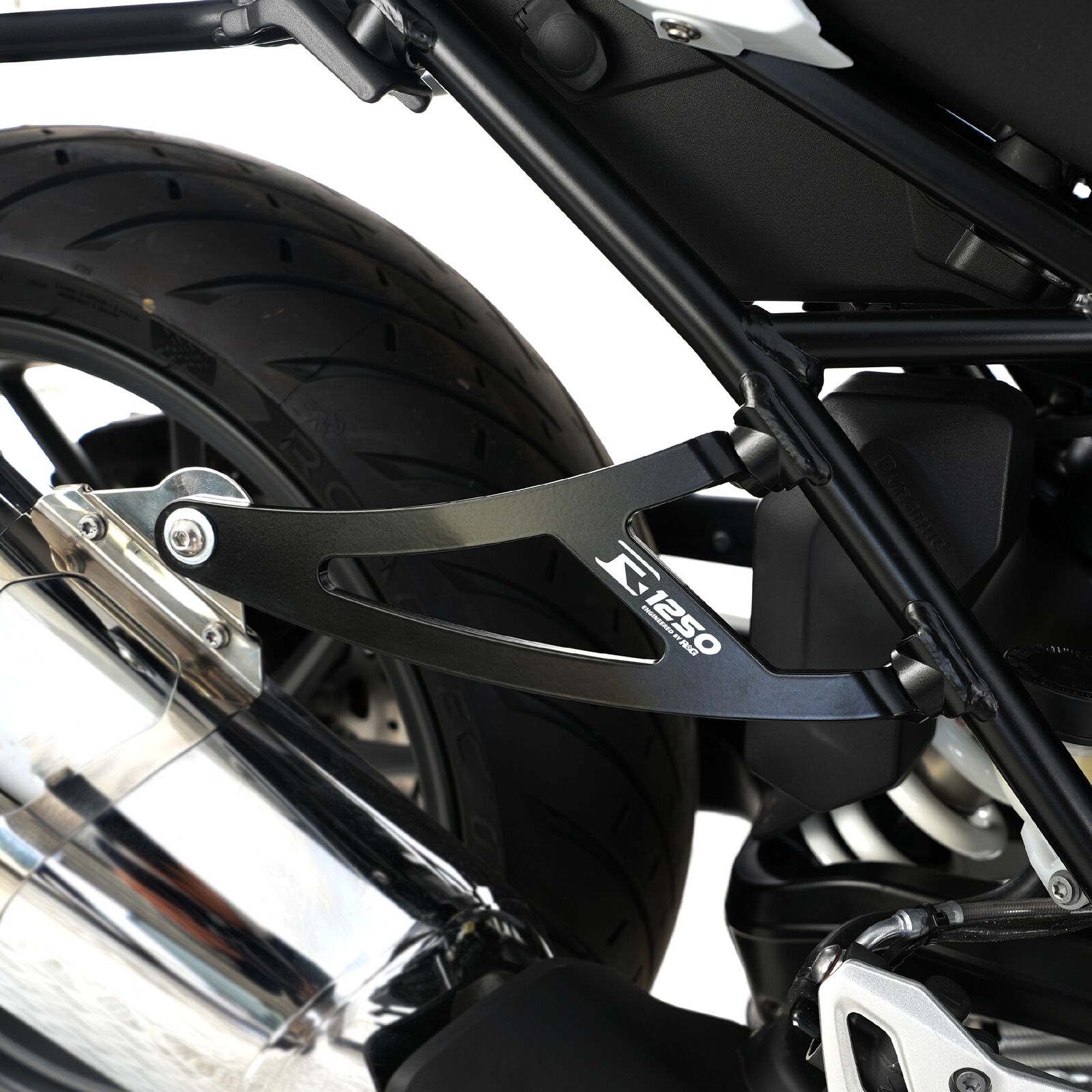 This R&G Exhaust Hanger kit comes with both the Exhaust Hanger (EH0096BK) and Footrest Blanking Plate (BLP0099BK) for the other side. Specially designed to fit and suit the BMW R1250 R/RS '19-,R1250RS SE '24- models stylish contours. This kit allows removal of the pillion pegs on both sides for that aggressive race/street bike look, whilst also allowing for your exhaust to be properly supported with a stylish R&G Exhaust Hanger.