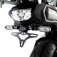 Made from stainless steel and/or aluminium for strength and/or weight saving, the ultra-strong Fender Eliminator has been powder coated for a premium look. Because the Fender Eliminator is tucked into the rear of the bike, the unit is much less susceptible to vibrations. Our Fender Eliminators feature a modular design that allows the use of original or aftermarket/R&G indicators (turn signals), by means of R&G Indicator Adapter kits (sold separately). Designed for a UK licence plate (7 inches / 18 centimetres tall) but suitable for other, similar or smaller sizes as well.  Check local laws before purchasing, and consider the alternative ‘Tail Tidy’.