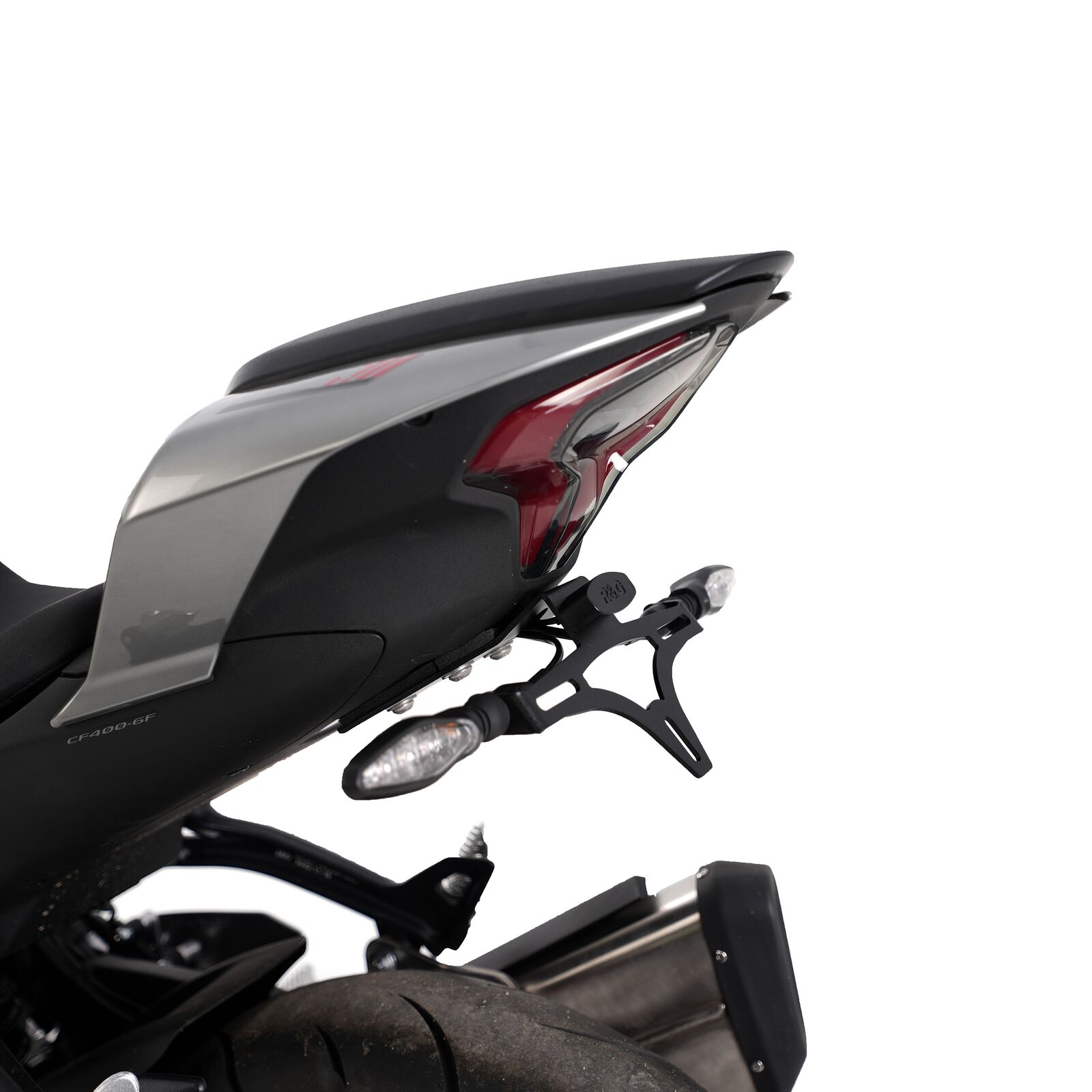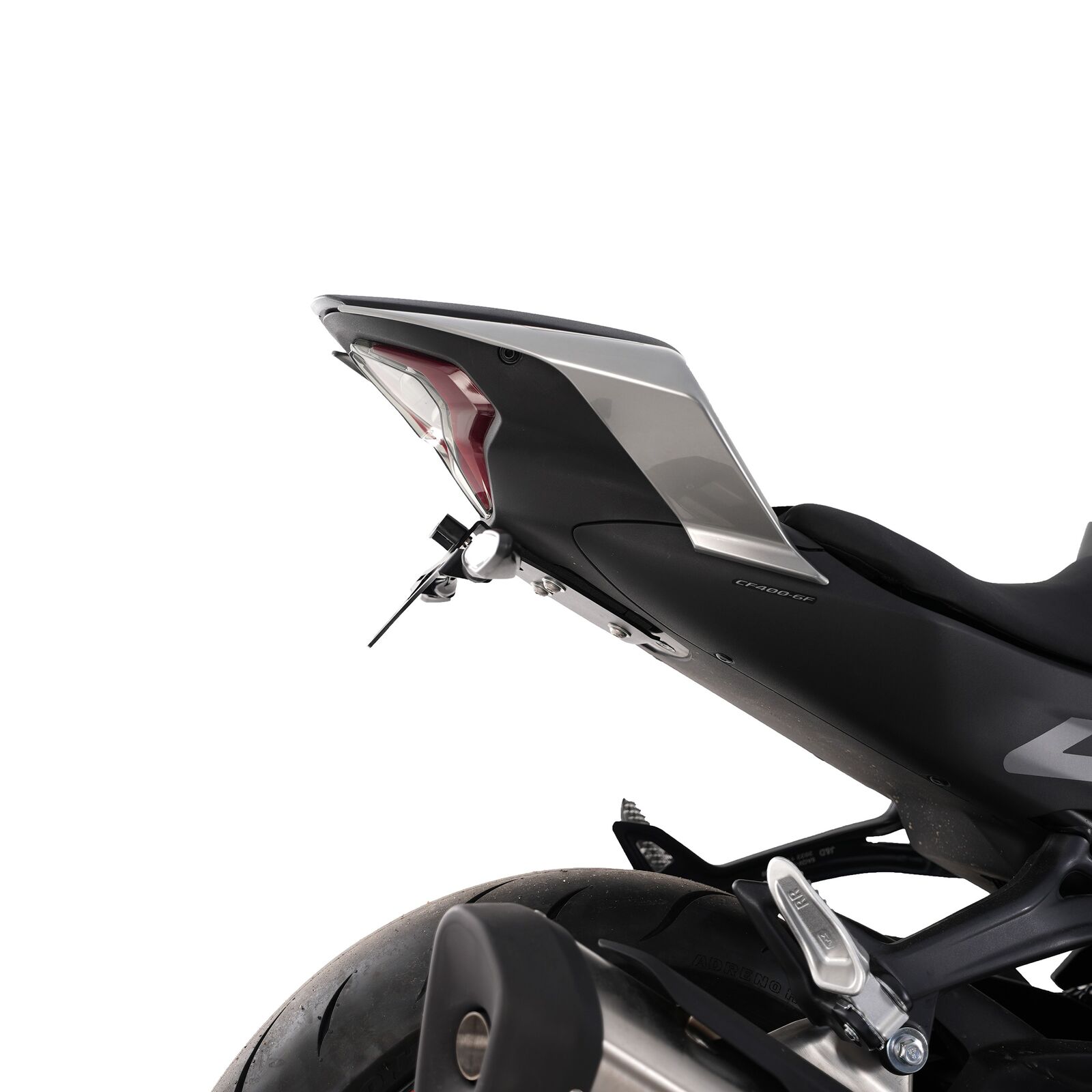 Made from stainless steel and/or aluminium for strength and/or weight saving, the ultra-strong Fender Eliminator has been powder coated for a premium look. Because the Fender Eliminator is tucked into the rear of the bike, the unit is much less susceptible to vibrations. Our Fender Eliminators feature a modular design that allows the use of original or aftermarket/R&G indicators (turn signals), by means of R&G Indicator Adapter kits (sold separately). Designed for a UK licence plate (7 inches / 18 centimetres tall) but suitable for other, similar or smaller sizes as well.  Check local laws before purchasing.