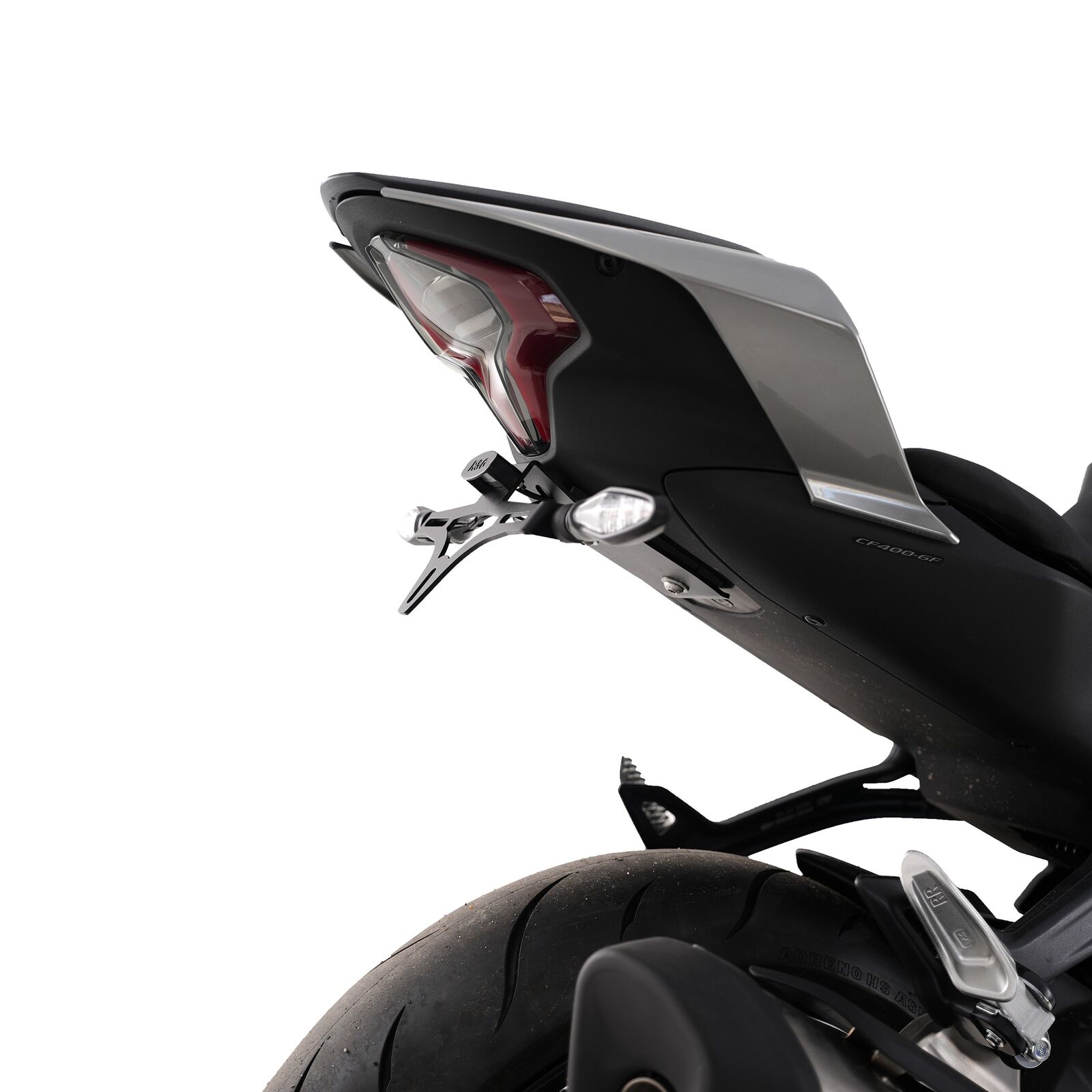 R&G Fender Eliminators dramatically improve the look of the bike, by replacing the huge, original licence plate holder with an elegant new holder – it comes complete with a sleek, superbright, road-legal LED licence plate light (where applicable) and an E-marked reflector. The Fender Eliminator is tucked much closer to the tail of the bike, giving it a really minimalist look that better matches the way the bike’s designer wanted it to look. Unlike our much-loved ‘Tail Tidies’, these Eliminators are NOT a one-size-fits-all solution for all countries, meaning they will best suit countries which use smaller licence plates.