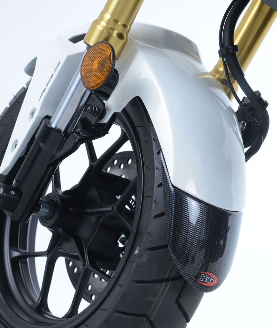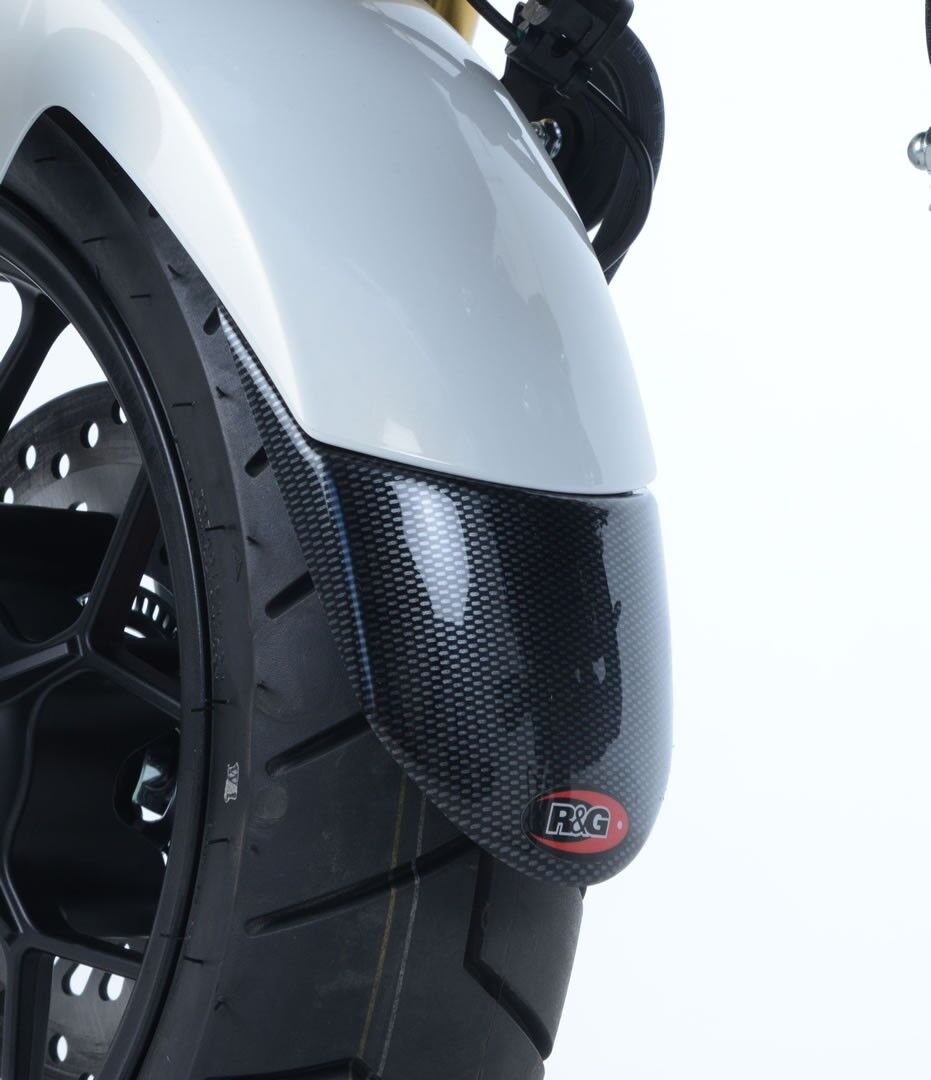 R&G Fender Extenders offer additional protection to front-mounted coolers, downpipes and fairing panels from debris, road grit, mud and water kicked up by the front wheel. Attaching to the motorcycle's front mud guard / fender via included adhesive strips and push rivets, installation takes only minutes. Designed to mate exactly to the front mud guard / fender, thanks to the latest 3D scanning technologies. Each design is bespoke to its intended fender and offers tailored protection for best performance and aesthetics. Made from ABS plastic and available in Black or Carbon Fibre effect finish. This R&G Fender Extender is compatible with the Honda MSX125 /GROM '16-'20 model.