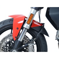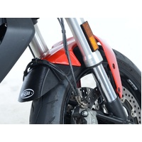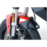 R&G Fender Extenders offer additional protection to front-mounted coolers, downpipes and fairing panels from debris, road grit, mud and water kicked up by the front wheel. Attaching to the motorcycle's front mud guard / fender via included adhesive strips and push rivets, installation takes only minutes. Designed to mate exactly to the front mud guard / fender, thanks to the latest 3D scanning technologies. Each design is bespoke to its intended fender and offers tailored protection for best performance and aesthetics. Made from ABS plastic and available in Black or Carbon Fibre effect finish.