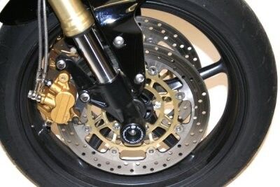 These fork protectors are suitable for the Triumph Daytona 675 '06-'12, Street Triple '07-'12 and the , Street Triple R '08- and help to eliminate damage to the front forks during a drop.