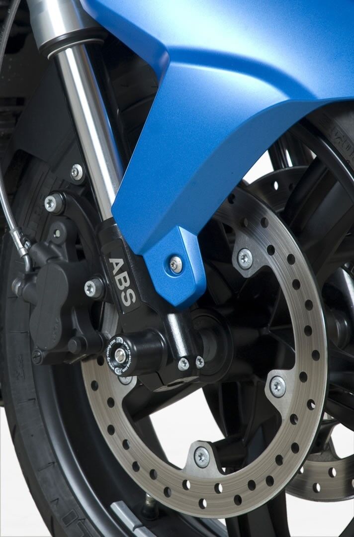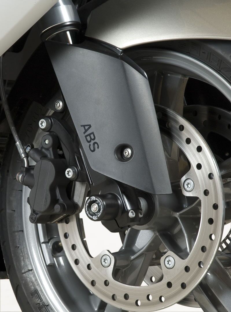 These fork protectors are suitable for the BMW C600 Sport and C650GT '12- models. Easy to install, they help to eliminate damage to the front forks, fork bottoms and brake calipers during a crash or drop.