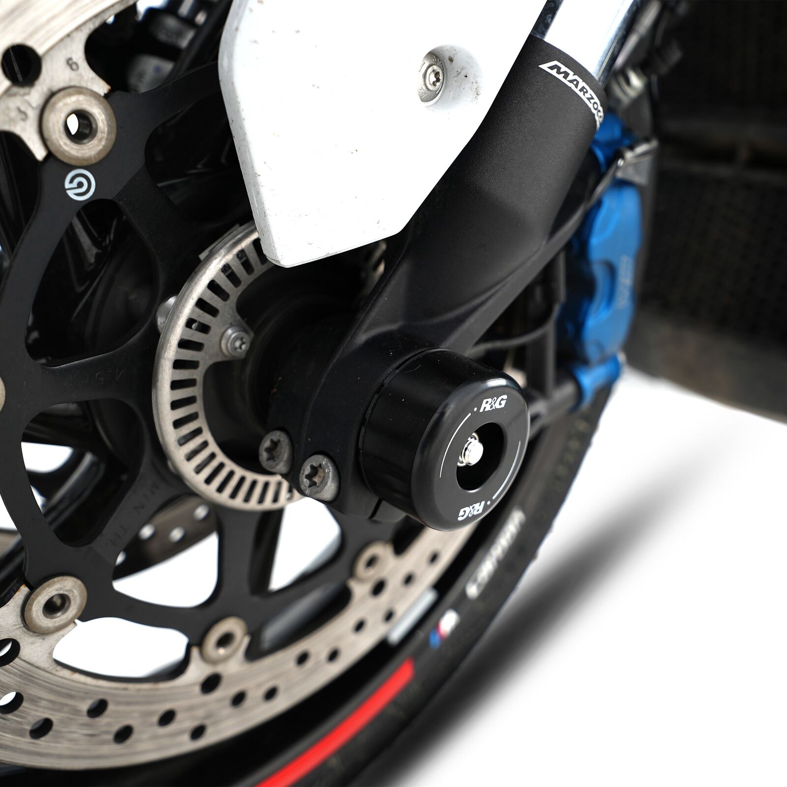 These fork protectors are suitable for the BMW S1000XR '20- '23,  M1000XR '24-, S1000RR '10- / HP4 '13-'14 / S1000R '14- / M1000RR '21-'22 / M1000R '23- models. Easy to install, they help to eliminate damage to the front forks, fork bottoms and brake callipers during a crash or drop.