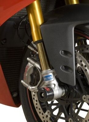 These fork protectors are suitable for the Ducati 899 Panigale '13-, Ducati 959 Panigale '16-,  Ducati 1199 Panigale '12- (all variants), Ducati 1299 Panigale '15-, Ducati Panigale V4S '18-  / V4R '19-, Ducati Panigale V2 '20- '24 & Streetfighter V4 (S) '20- models. They help to eliminate damage to the front forks, fork bottoms and brake callipers during a crash or drop.