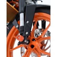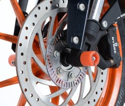 These fork protectors are suitable for the KTM 125 Duke '11-'23 ,200 duke '12-, 390 Duke '13-'23, RC125/200 '14- RC390 '14-'21, 250 Duke '17-, Husqvarna Vitpilen/ Svartpilen 401 '18-23 & Svartpilen 125 '21-. Helping to eliminate damage to the front forks, calipers and discs from the result of a crash or drop.