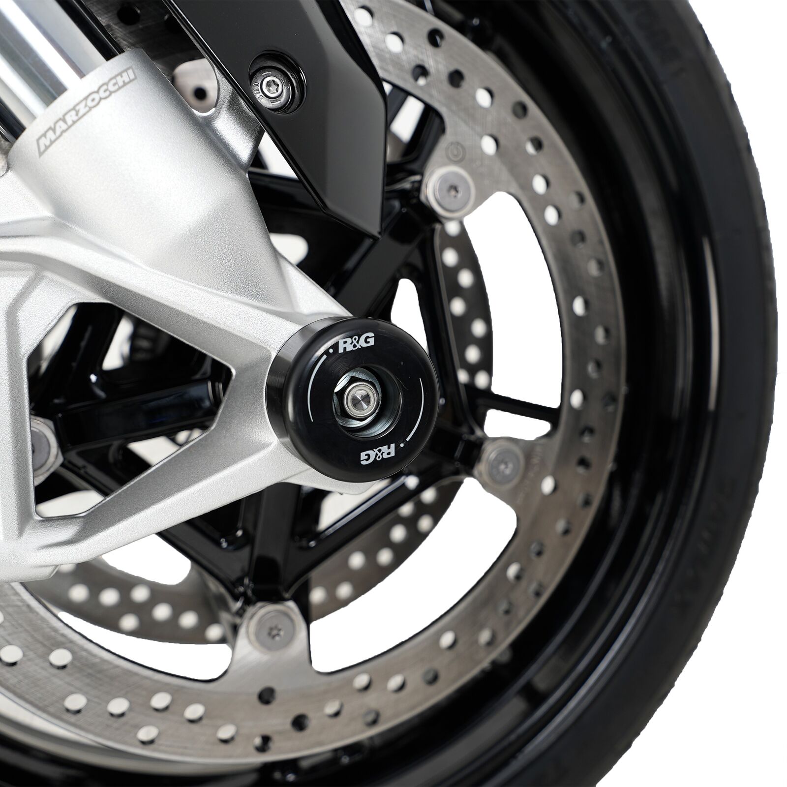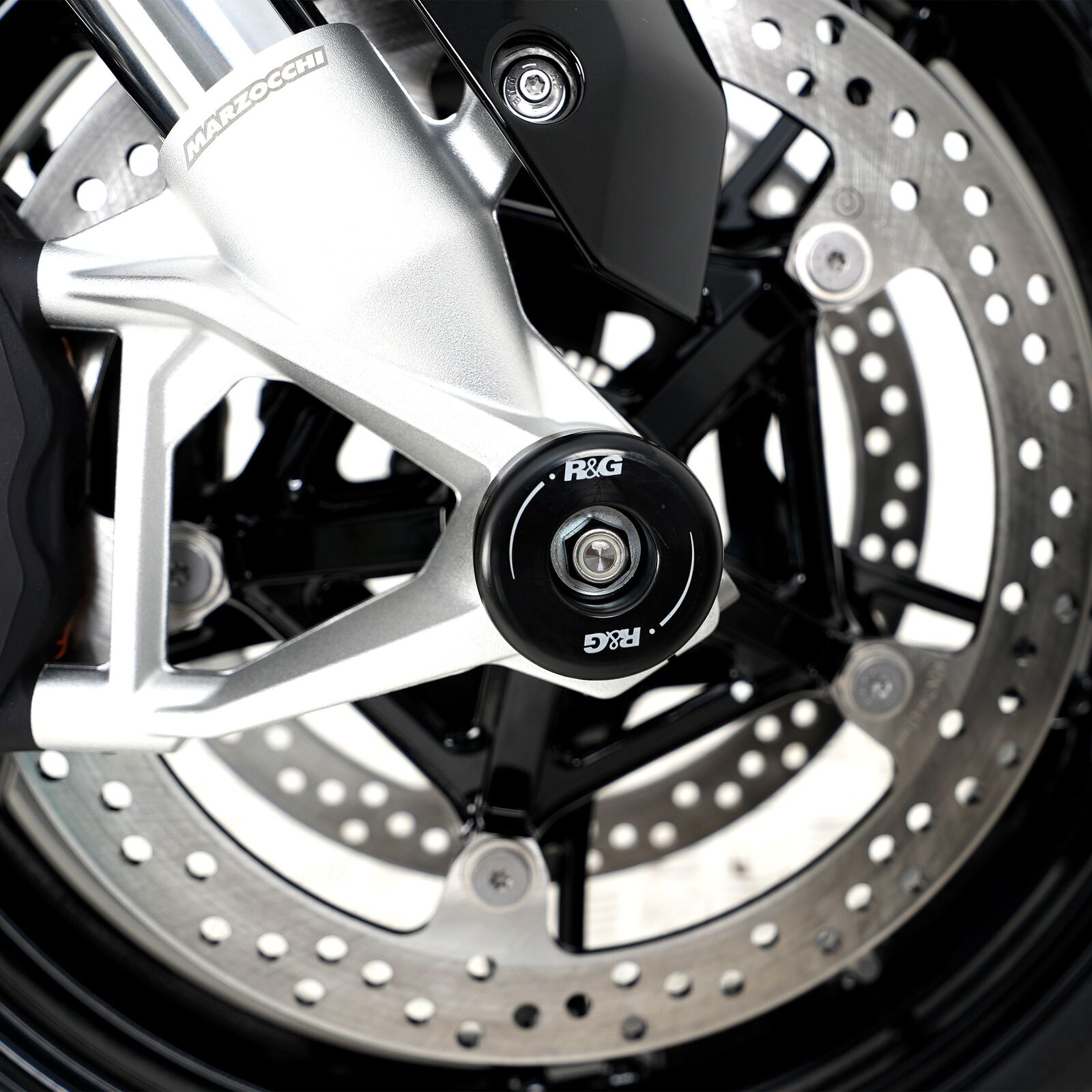 These fork protectors are suitable for the BMW S1000XR '20- '23,  M1000XR '24-, S1000RR '10- / HP4 '13-'14 / S1000R '14- / M1000RR '21-'22 / M1000R '23- models. Easy to install, they help to eliminate damage to the front forks, fork bottoms and brake callipers during a crash or drop.