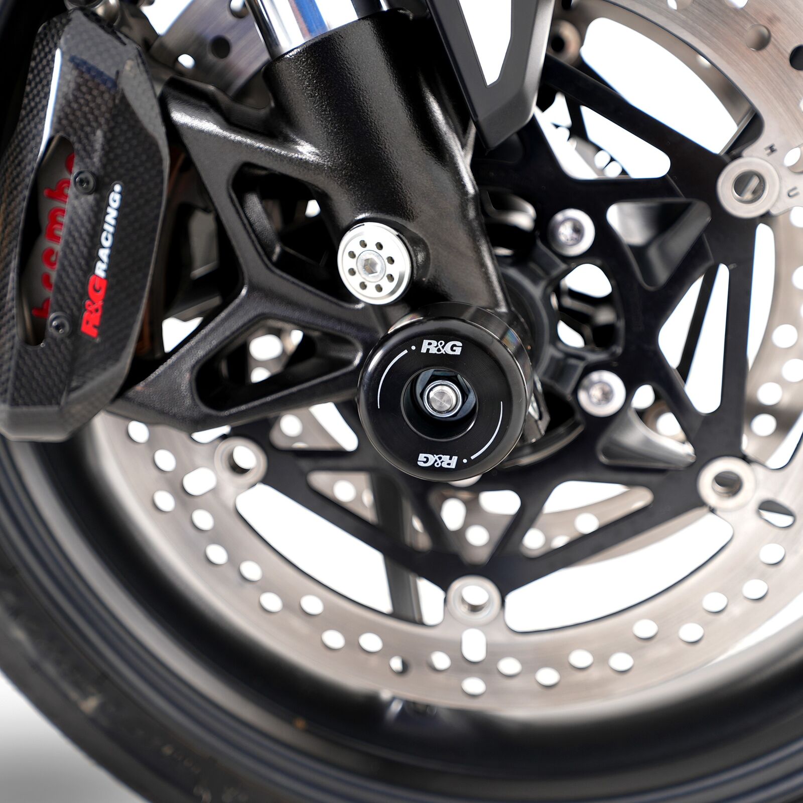 These R&G Fork Protectors are suitable for the Triumph Daytona 675 '13-, Daytona 660 '24-, Street Triple RX '15-, Street Triple R/RS 765 '17-/ Street Triple S 765 '17- '20, Daytona Moto2™ 765 '20- '24, Trident 660 '21- & Tiger 660 Sport '22- '24 models.