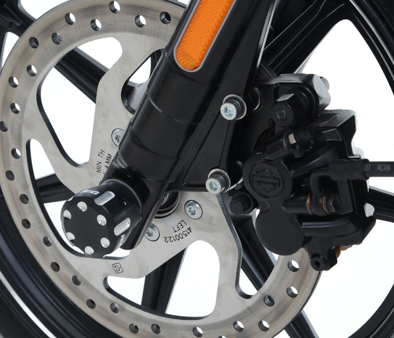 These fork protectors are suitable for the Harley Davidson Street 500 '14-, Street 750 '15- models. Easy to install, they help to eliminate damage to the front forks, fork bottoms and brake calipers during a crash or drop.