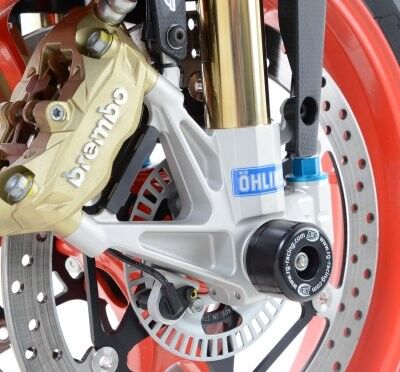 These fork protectors are suitable for the Aprilia V4 Tuono 1100 (Factory) '15-  , RSV4 RR '15- '24, RSV4 RF, RSV4 1100 (Factory) '19- '24 models. Easy to install, they help to eliminate damage to the front forks, fork bottoms and brake calipers during a crash or drop.