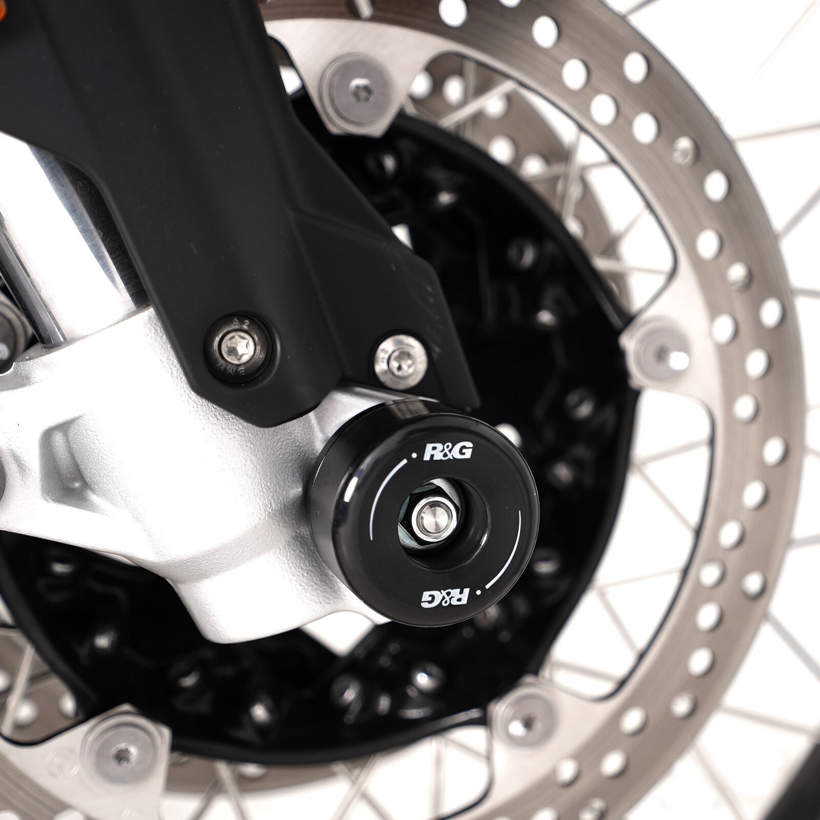 These fork protectors are suitable for the BMW F800GS '24-/ S1000XR '15-'19,  F800R '15-&  F850GS / F750GS '18-/ F850GSA 19-, , F900GSA '24- onwards models. Easy to install, they help to eliminate damage to the front forks, fork bottoms and brake calipers during a crash or drop.
