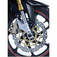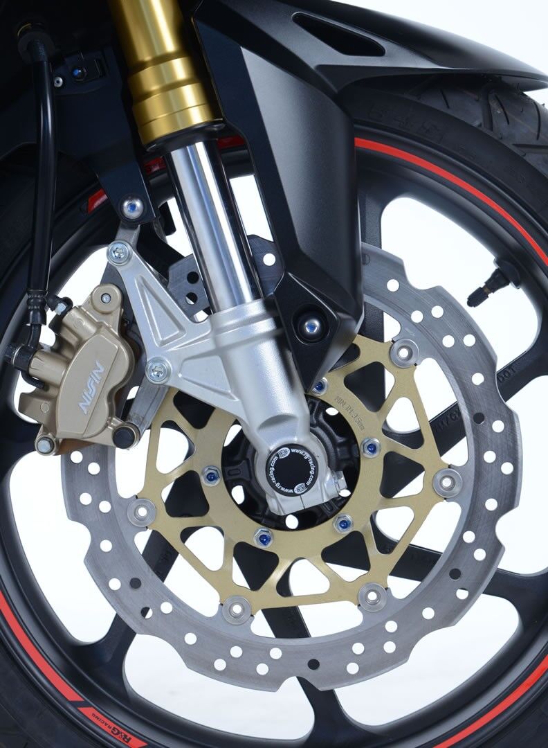 Easy to install, they simply install onto either side of the spindle, helping eliminate damage to the front forks, fork bottoms, disc, fork bottoms and brake calipers from a crash or drop or slide.