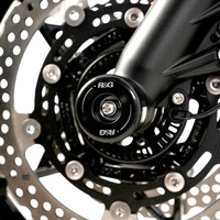 Easy to install, they simply install onto either side of the spindle connected by a tie bar helping eliminate damage to the front forks, fork bottoms, disc, fork bottoms and brake calipers from a crash or drop or slide.