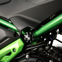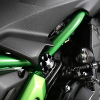 This frame insert kit includes 2x Frame Plugs for both the upper left and right hand sides of the Kawasaki Z650 '17- & Z650RS '21- '24 frame.
