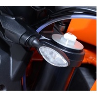 These indicator adapters are made to suit the KTM 1290 Superduke '14- '24 & KTM 790 Duke '18-, 790 Adventure '19-'22, 1290 Super Duke R ’20- '24 & KTM 890 Adventure '20-'22 models and allow the use of our own micro indicators (RG370/RG371/RG372) as front indicators, getting rid of those large OEM indicators and helping give your bike a more sporty look. Micro Indicators not included.