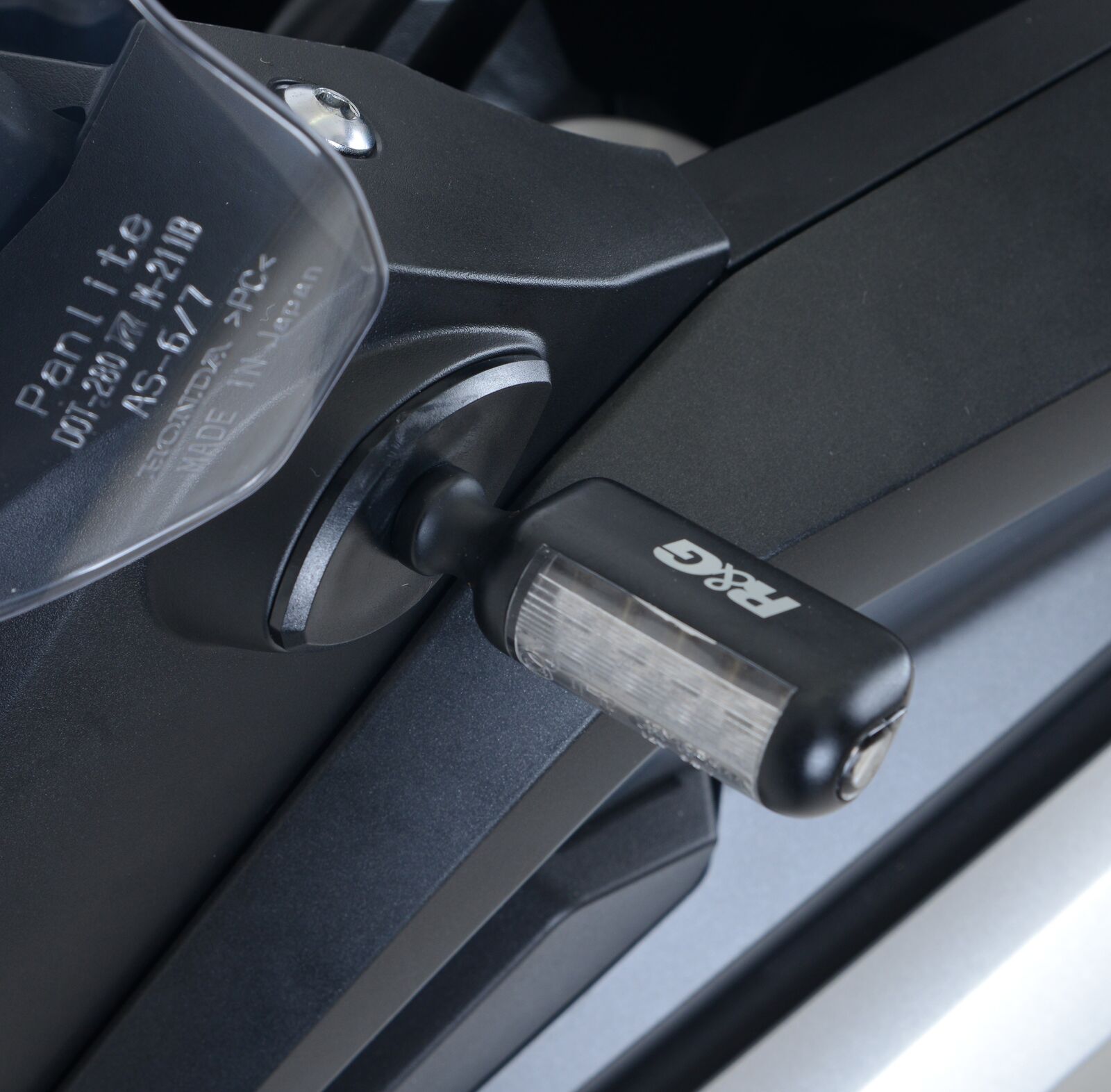 These R&G Front Indicator Adapters are made to suit the Honda NC750X '16-'20 models and allow the use of our own micro indicators (RG370/RG371/RG372) as front indicators, getting rid of those large OEM indicators and helping give your bike a more sporty look.