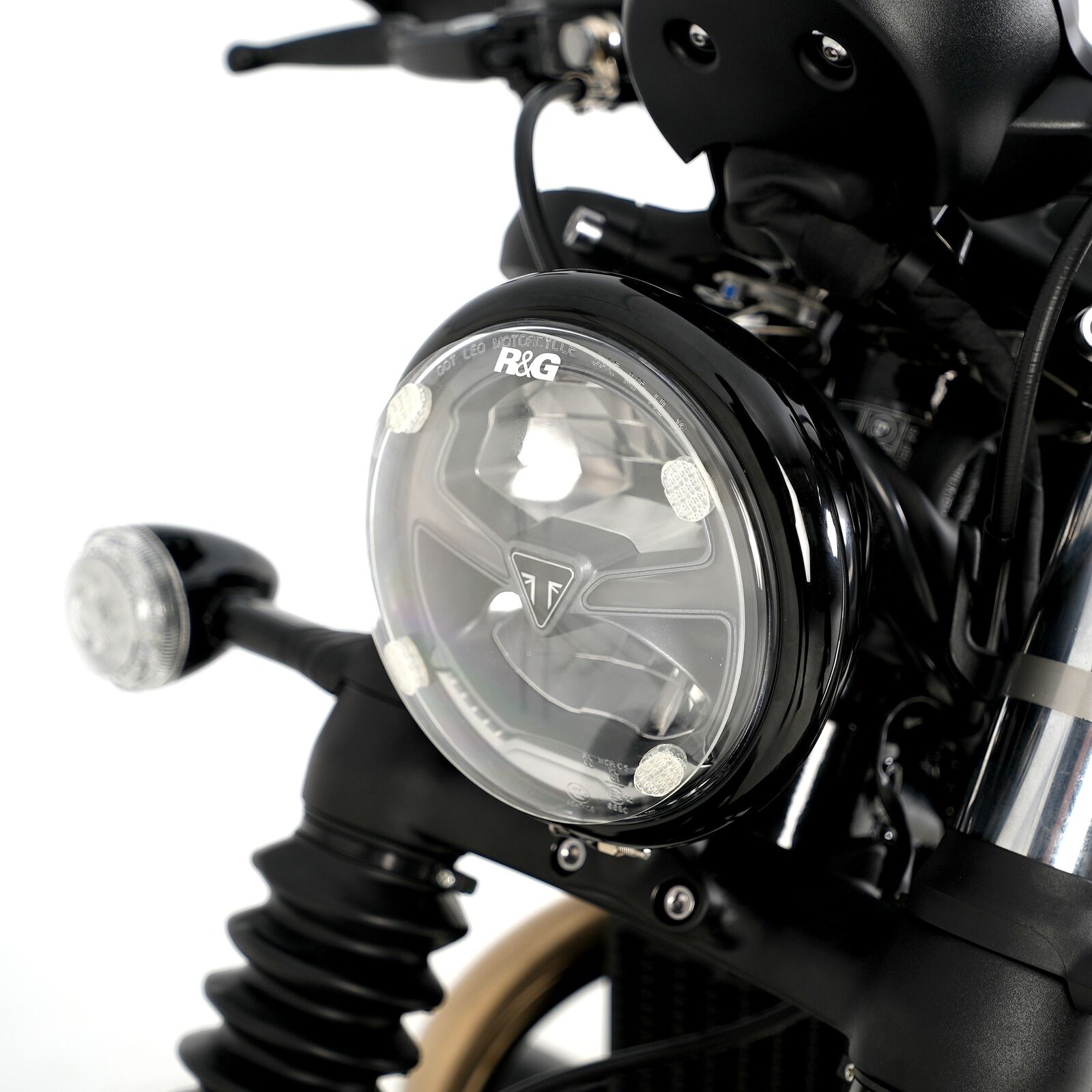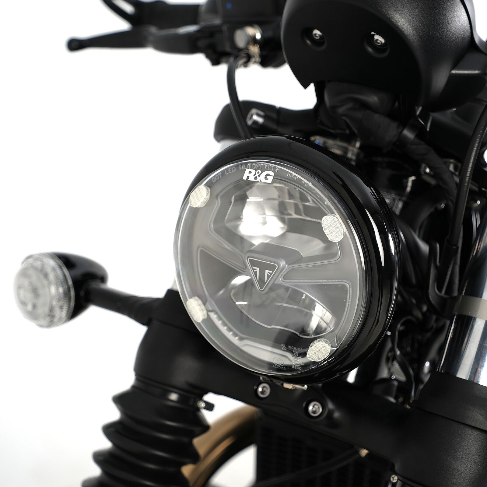 This R&G Headlight Shield is specially designed to fit Indian FTR1200 (S) '19-, Scout Bobber '20- & Triumph Scrambler 1200 XC/XE '19-, Bonneville bobber '21- models.