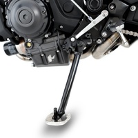 Never forget your sidestand puck again! Kickstand Shoes bolt onto the bottom of the sidestand, to enlarge the original’s footprint by up to 100%, significantly spreading the load placed upon it, to help prevent the stand ‘piercing’ the ground. Despite this enlargement, the Shoe does not affect ground clearance or interfere with the chain run during normal riding. Available for nearly 100 different bikes, covering popular adventure, sports, nakeds and touring machines, each Shoe is bespoke to the intended bike and sandwiches the existing stand foot with an aluminium bottom level to prevent corrosion and is topped with a stainless steel lid for strength. The product can be fitted in minutes as it is clamped together with three countersunk Allen bolts. This particular model fits the Yamaha MT-07 '14- (FZ-07), XSR700 '16-, Tracer 700 '16- (FJ-07) & Tracer 7 (GT) '21- models
