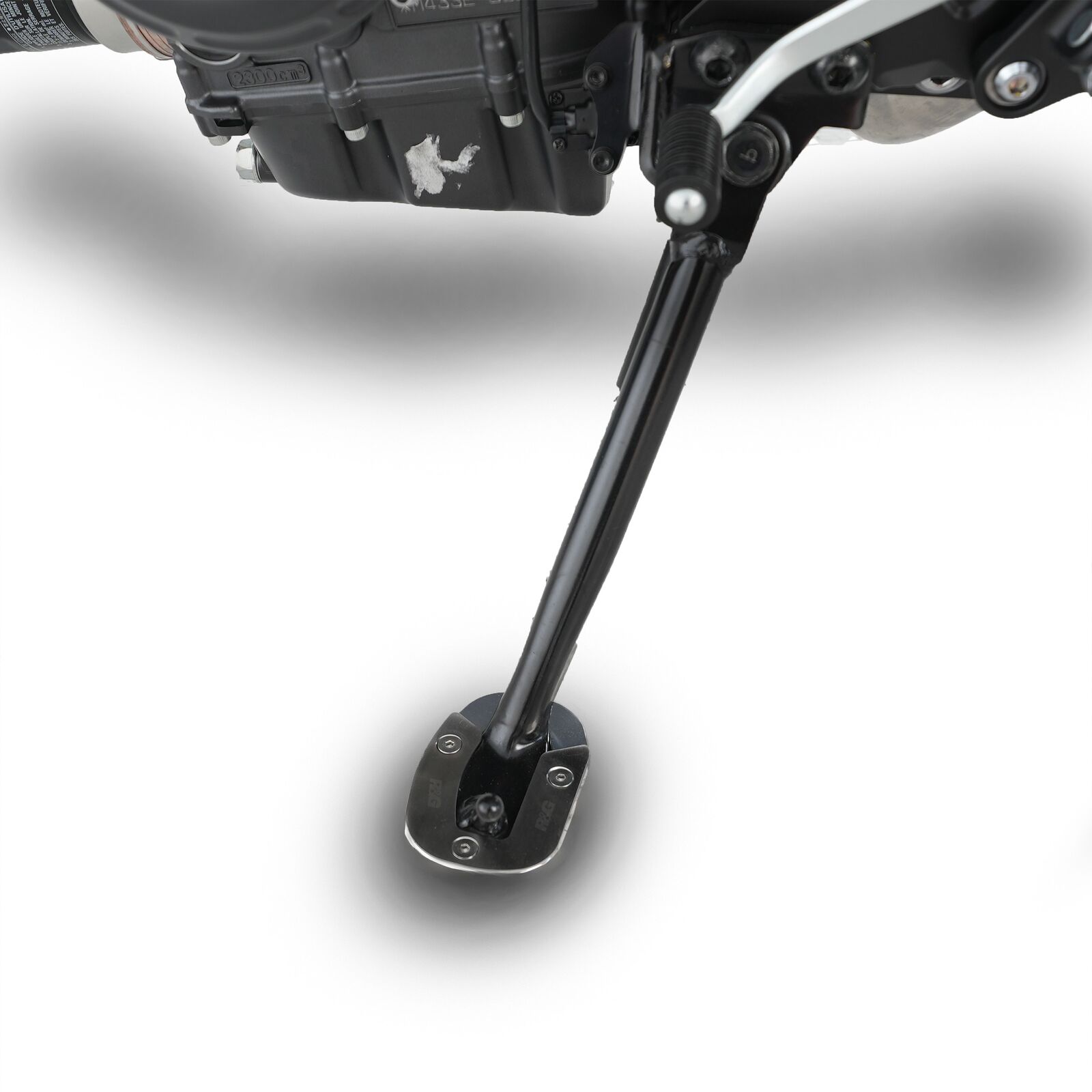 Never forget your sidestand puck again! Kickstand Shoes bolt onto the bottom of the sidestand, to enlarge the original’s footprint by up to 100%, significantly spreading the load placed upon it, to help prevent the stand ‘piercing’ the ground. Despite this enlargement, the Shoe does not affect ground clearance or interfere with the chain run during normal riding. Available for nearly 100 different bikes, covering popular adventure, sports, nakeds and touring machines, each Shoe is bespoke to the intended bike and sandwiches the existing stand foot with an aluminium bottom level to prevent corrosion and is topped with a stainless steel lid for strength. The product can be fitted in minutes as it is clamped together with three countersunk Allen bolts. This particular model fits the Yamaha MT-07 '14- (FZ-07), XSR700 '16-, Tracer 700 '16- (FJ-07) & Tracer 7 (GT) '21- models