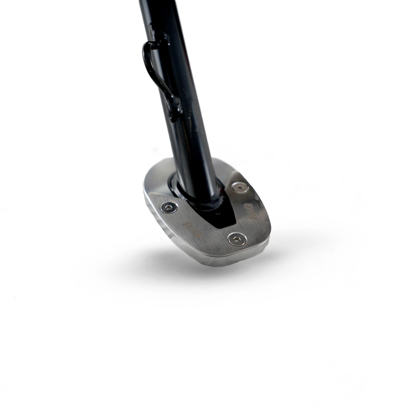 Never forget your sidestand puck again! Kickstand Shoes bolt onto the bottom of the sidestand, to enlarge the original’s footprint by up to 100%, significantly spreading the load placed upon it, to help prevent the stand ‘piercing’ the ground. Despite this enlargement, the Shoe does not affect ground clearance or interfere with the chain run during normal riding. Available for nearly 100 different bikes, covering popular adventure, sports, nakeds and touring machines, each Shoe is bespoke to the intended bike and sandwiches the existing stand foot with an aluminium bottom level to prevent corrosion and is topped with a stainless steel lid for strength. The product can be fitted in minutes as it is clamped together with three countersunk Allen bolts. This particular model fits the KTM 1090 Adventure '17-, KTM 1190 Adventure '14- (without Centre Stand fitted), 1290 Super Adventure '15-'20, 790 Adventure '19-, Husqvarna Norden 901 '22-, KTM 890 Adventure '20-'22 & KTM 890 SMT '23- '24
