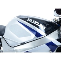 R&G Tank Traction Grip kits are available for many different bike styles and brands, with new applications released regularly. The unique R&G texture was specifically designed to be both soft and durable, providing the rider with the grip and feel he/she needs to assist in better bike control, enabling the rider to maintain a stable body position while cornering and braking, whilst also relieving fatigue and providing the rider with complete confidence allowing him/her to fully focus on the road (or track) ahead instead of slipping and sliding on the tank. Each Tank Traction Grip kit is supplied with precision pre-cut adhesive pieces, designed to fit the intended bike, typically in either 2, 4 or 6 pieces (in total) depending on the shape of the tank and adjoining fairing. The high-strength adhesive backing ensures a highly durable product that will stay exactly where you put it, as well as not affecting or damaging paintwork. Each R&G Tank Traction Grip kit is available in black and ultra-clear finishes to blend into your bike’s paintwork or stand out, depending on your preference. R&G works in both wet and dry conditions and is equally at home on the track as it is on the commute home! Made in the UK. This R&G Tank Traction Grip sheet kits consists of 2x sheets of the special R&G textured material (sized 265mm x 110mm each), cut to a universal tank shape.