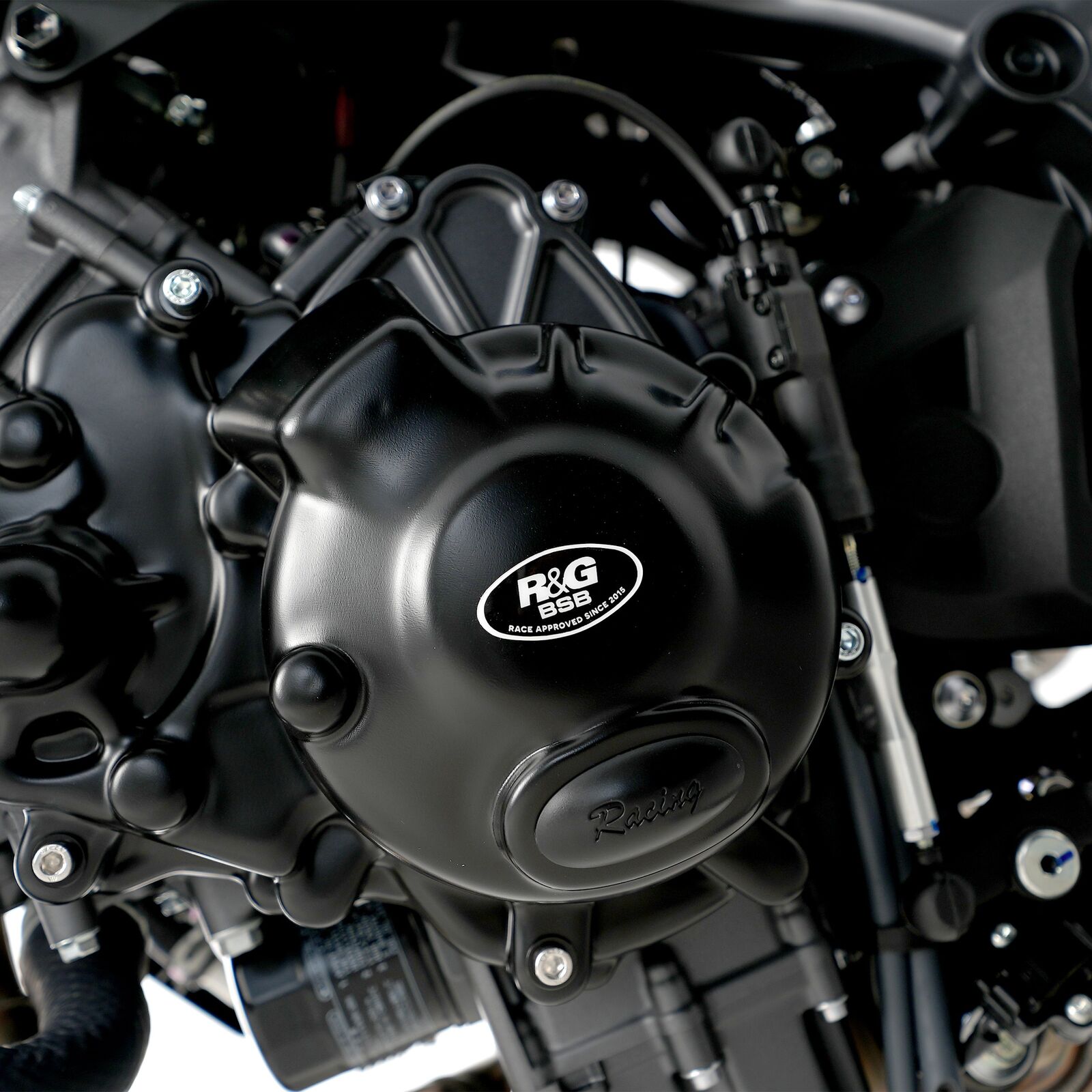 This left-hand Crank & Waterpump cover R&G Race Series Engine Case Cover fits the YZF-R9 '25-, Yamaha MT-09 (SP) ’21-, Tracer 9 '21- '24, Tracer 9 GT '21-, Tracer 9 GT Plus '25-, XSR900 ’22- & XSR900 GP '24-  models, protecting the exposed casing from damage in the event of a crash, slide or drop.
