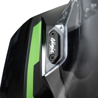 Lose your mirrors for that rebellious look or simply to stop your fairings flapping whilst on track days or racing! These neat little blanking plates fit over the mounting point for the mirrors and can be fitted in seconds. (comes supplied with bolts for installation) This product is suitable for the Kawasaki Ninja 400 (2018 onwards), Kawasaki Ninja 300 (2012 onwards), Kawasaki Ninja 250 (2013 onwards), Kawasaki Ninja 125 (2019 onwards) Kawasaki ZX6R 636 '13- '24, Kawasaki  Ninja 7 Hybrid/HEV '24-, Ninja 250SL '14-, Kawasaki ZX-25R '20- & ZX-4R(R) (SE) ’23- '24