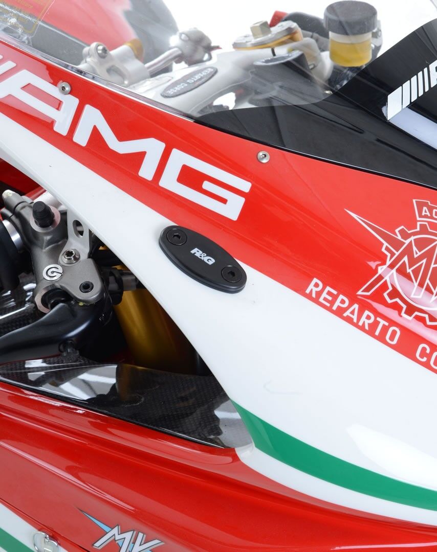 Lose your mirrors for that rebellious look or simply to stop your fairings flapping whilst on track days or racing! These neat blanking plates fit over the mounting point for the mirrors and can be fitted in seconds - (comes supplied with bolts for installation). This product is suitable for the MV AGUSTA F3 675(2012 onwards), F3 800 (2013 0nwards) and MV Agusta F4 '10- models. Sold as a pair.