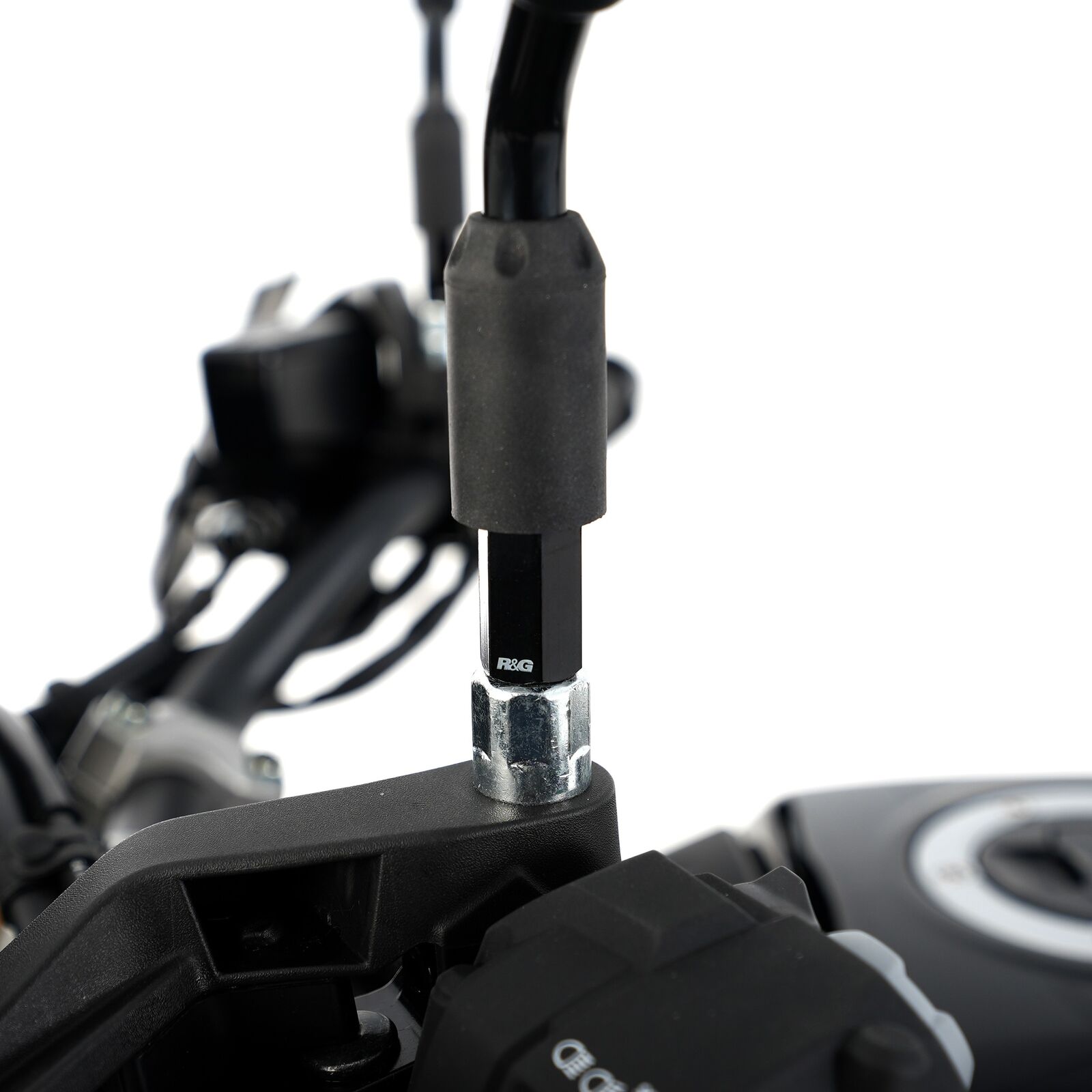 These Mirror Risers are made from Acetal and are suitable the  for Kawasaki Z250SL '14-, Versys-X 300 '17-, Z400/ Z250 '19- / Honda CMX500 Rebel '17-, XL750 Transalp '23- '24 / Suzuki V-Strom 1050 /V-Strom 1050 DE '23- or any bike require M10 x 1.25 (LEFT HAND THREADED) mirror extensions. Risers are perfect for increasing rearward visibility while riding. This extender raises the mirror by 45mm further up from the original.