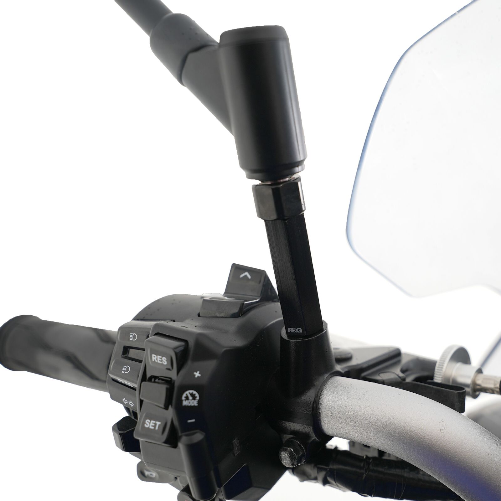 This extender raises the mirror by 45mm further up from original. Easy to fit. Simply unscrew your mirrors, screw the riser in place, and then refit your mirrors.