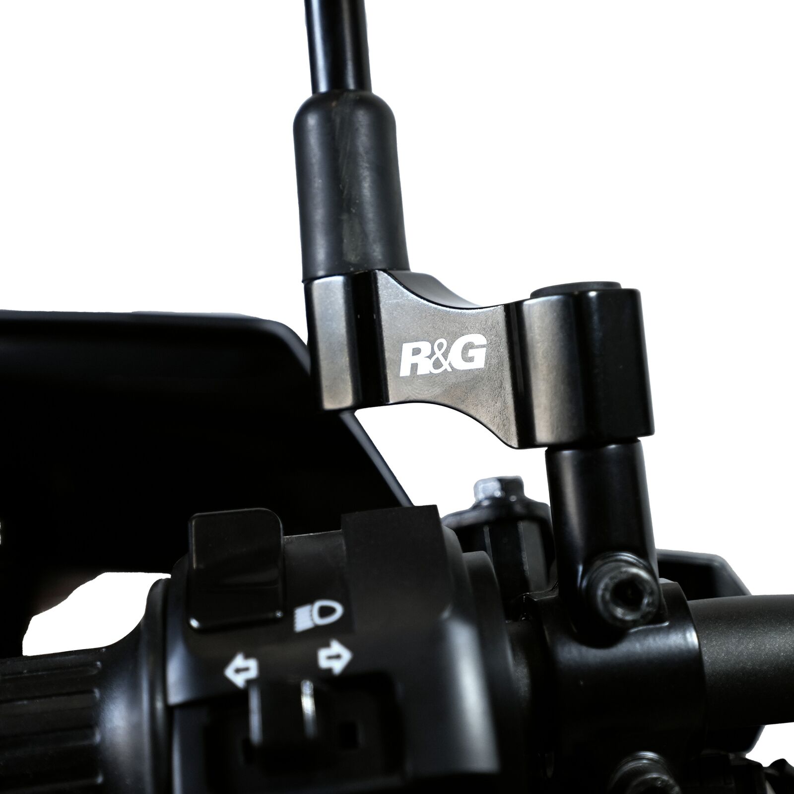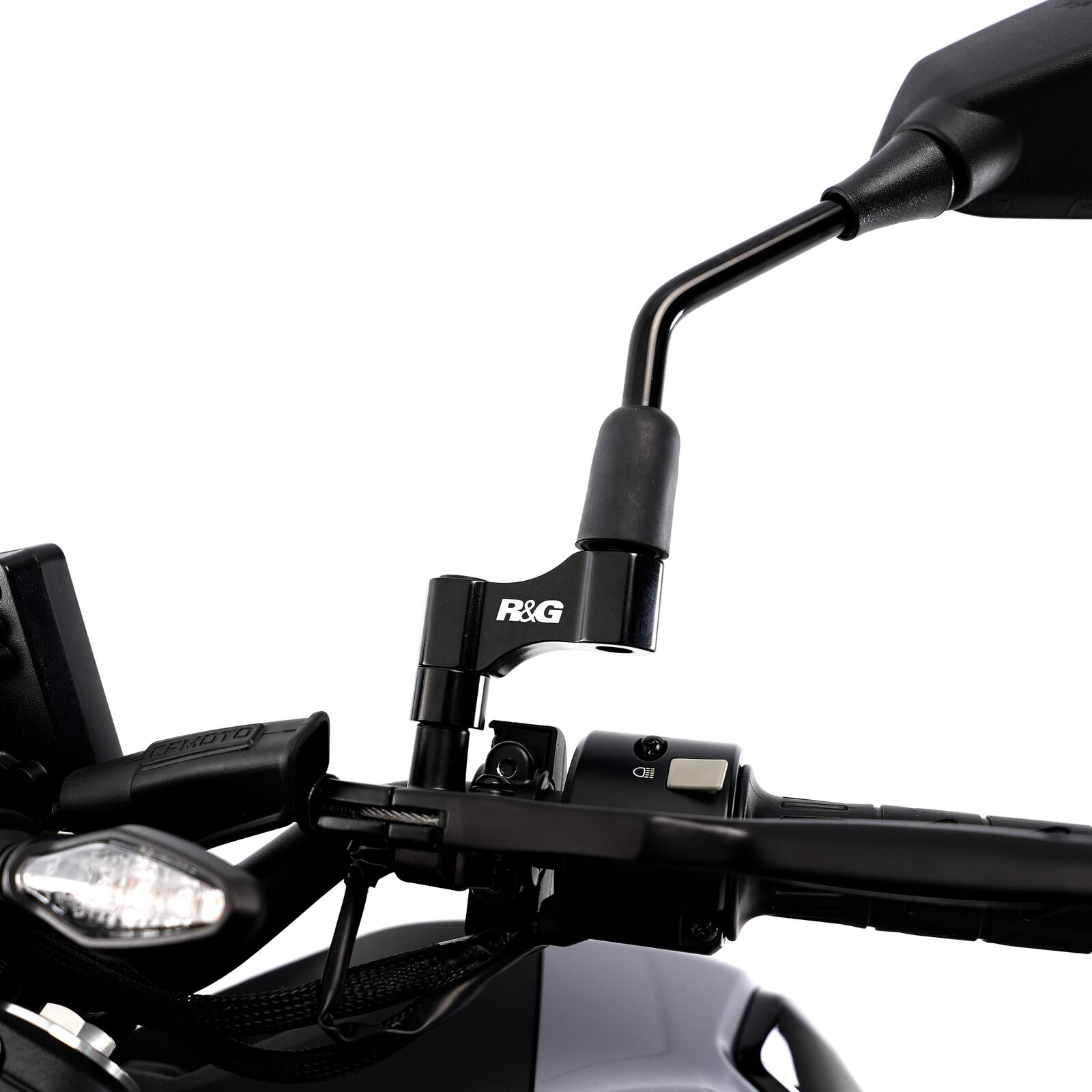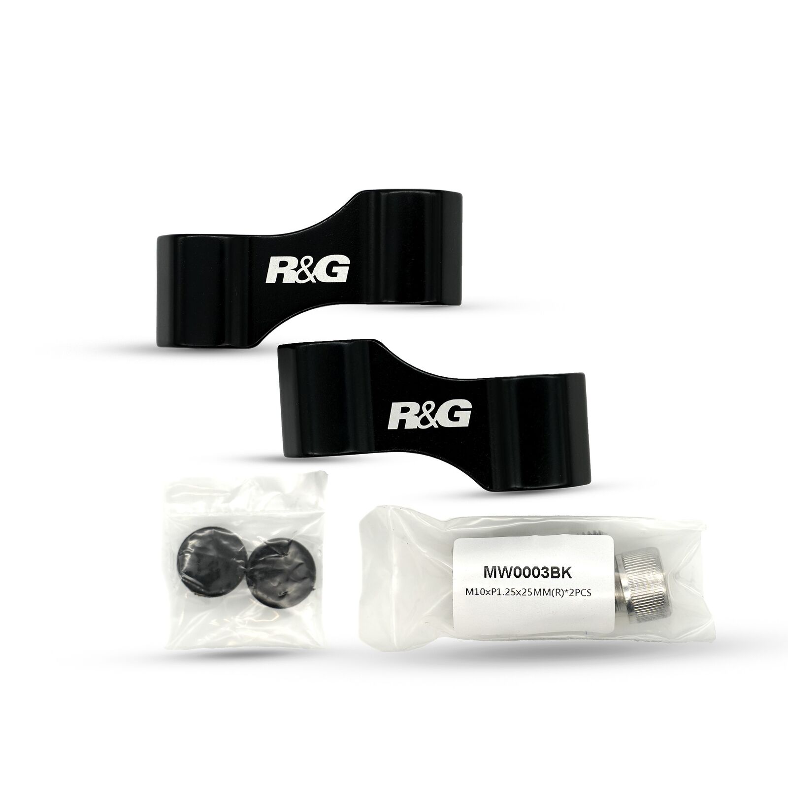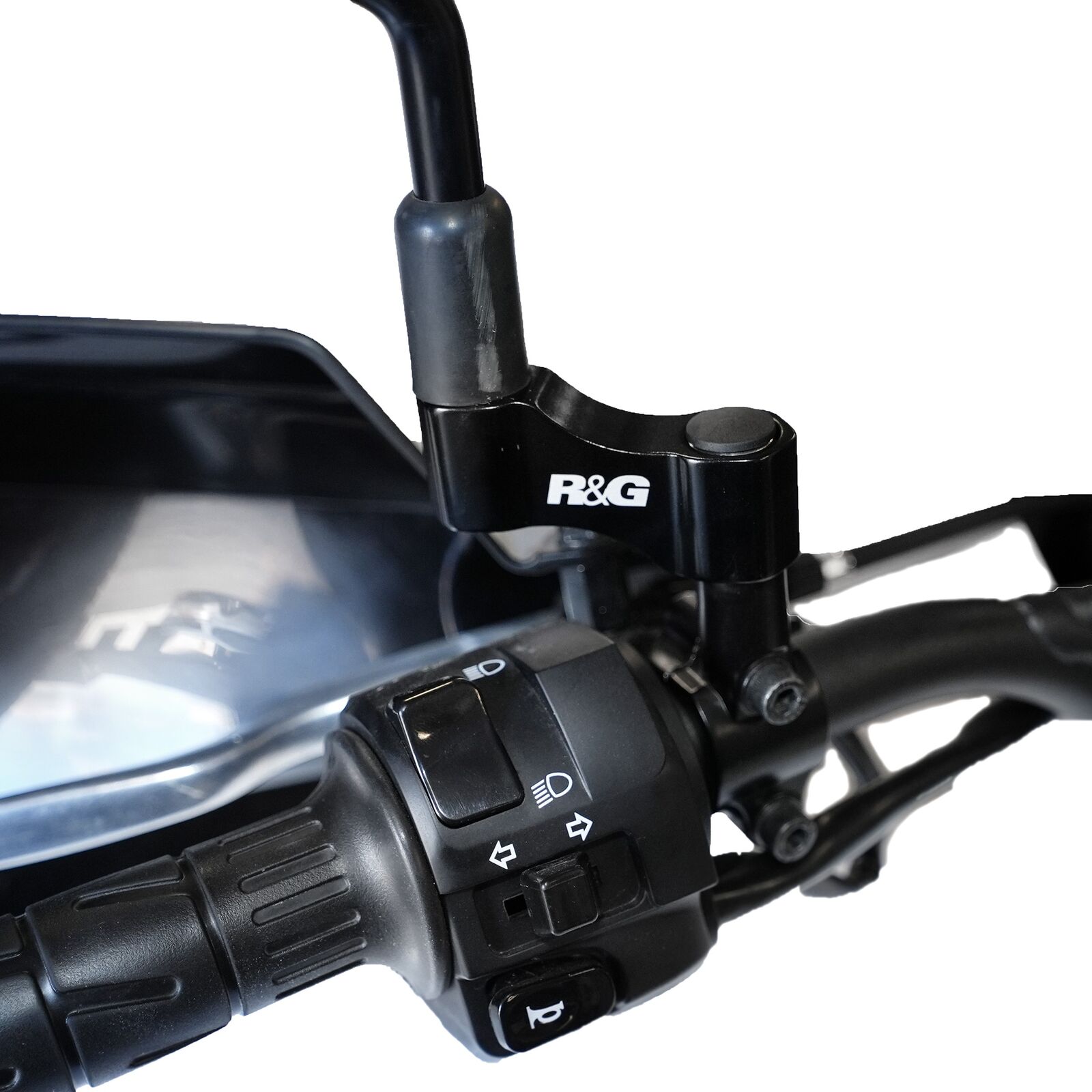 This Mirror Wideners set contains a pair of M10 x 1.25 right-hand thread Mirror Wideners designed to both lift your mirrors and move them further outwards for better visibility clearance.