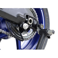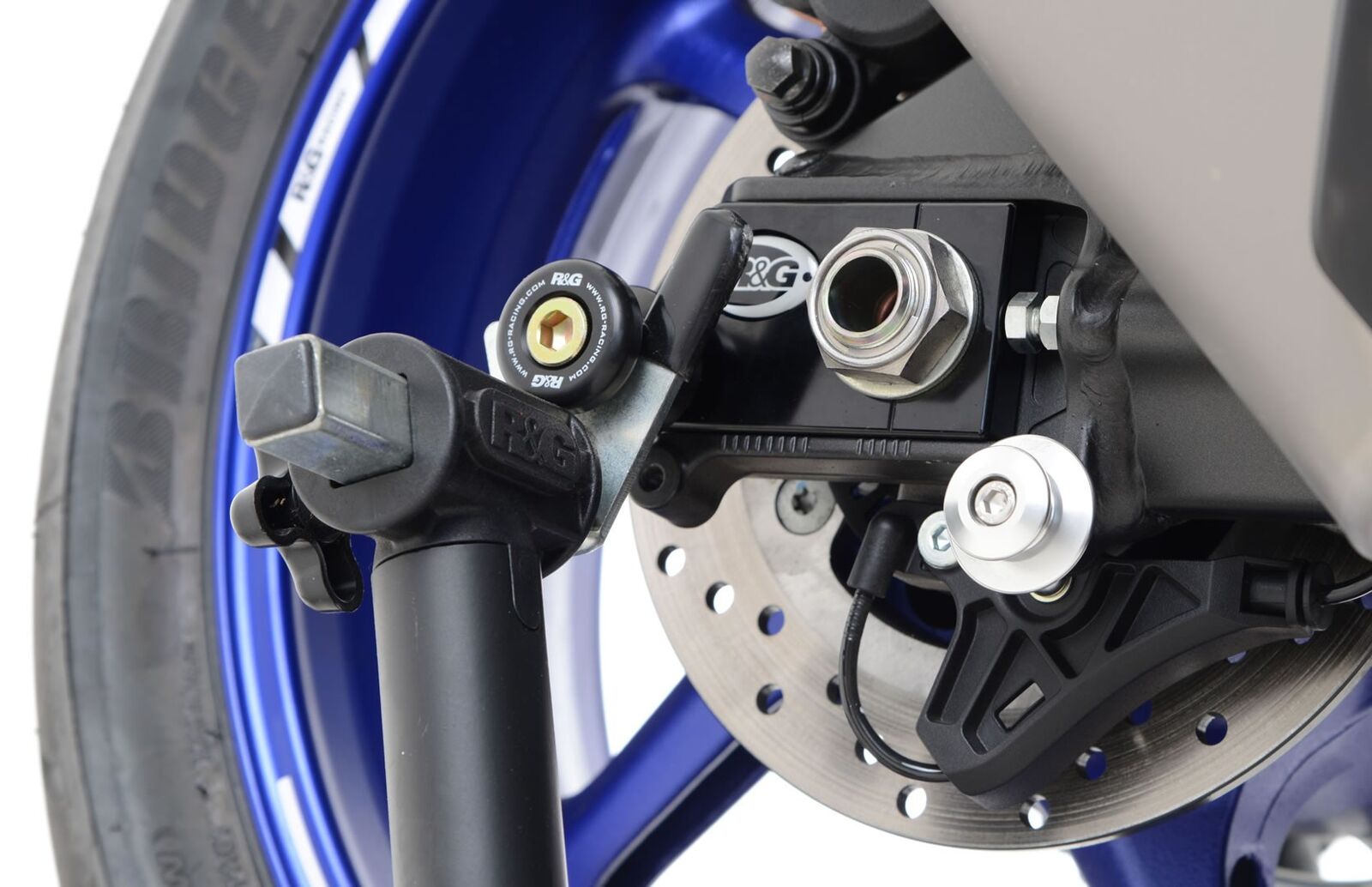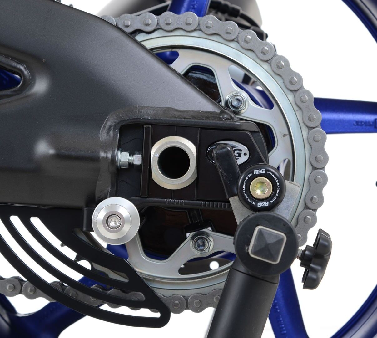 R&G Offset Cotton Reels directly replace the OE chain adjusters on the rear swingarm, off-setting the cotton reel mounting point from installed directly into the swingarm, instead into a specially machined metal bracket. Offering the best of both worlds in terms of crash protection and functionality with the ability to use the R&G Offset Cotton Reels bobbins as paddock stand bobbins for tyre/chain maintenance as well as offering crash protection to the rear wheel components. Specially designed for the Yamaha YZF-R1/R1M '07- , Yamaha MT-10 '16- & SP '17-, Tmax 560 '20- & TMAX TECH MAX '22- models, R&G Offset Cotton Reels are designed to replace the OEM chain adjuster blocks, offsetting the cotton reel installation point further rearward, this is because, under extreme riding condition, the OEM/Aftermarket exhausts have been known to impact with a standard sized (traditionally swingarm mounted) cotton reel as well making it easier to locate and lift onto a paddock stand. Sold in pairs.